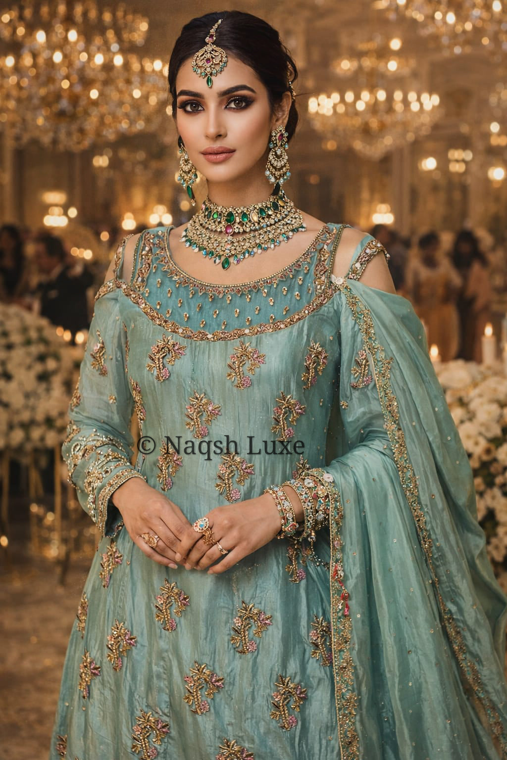 Resham, Dabka, Kora, Sequins, Crystals, Pearls, Sitaray, Tilla, Stones.