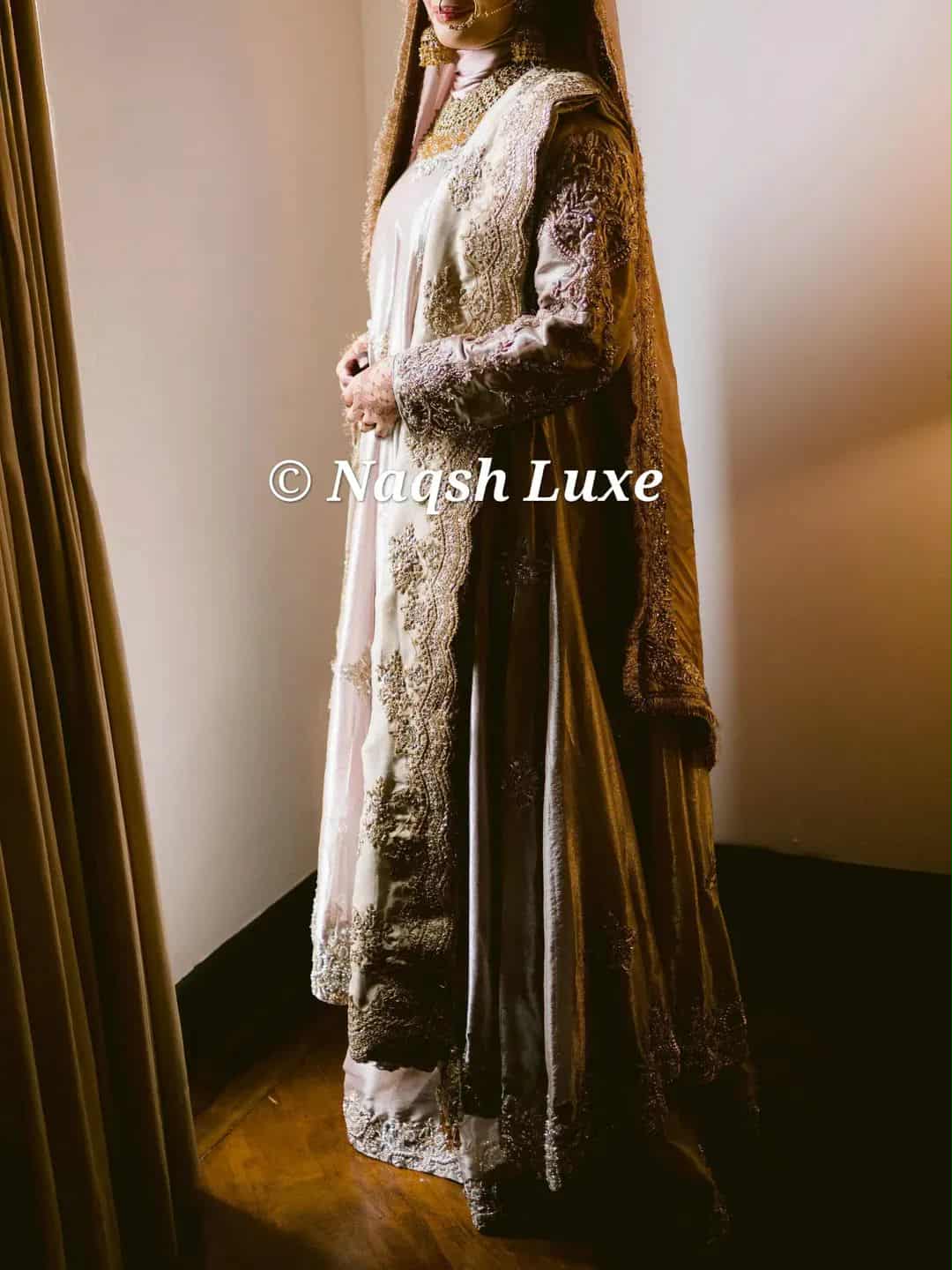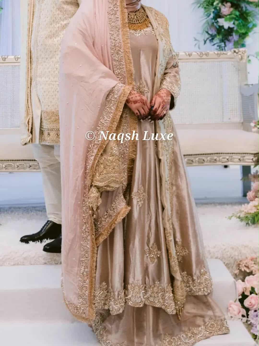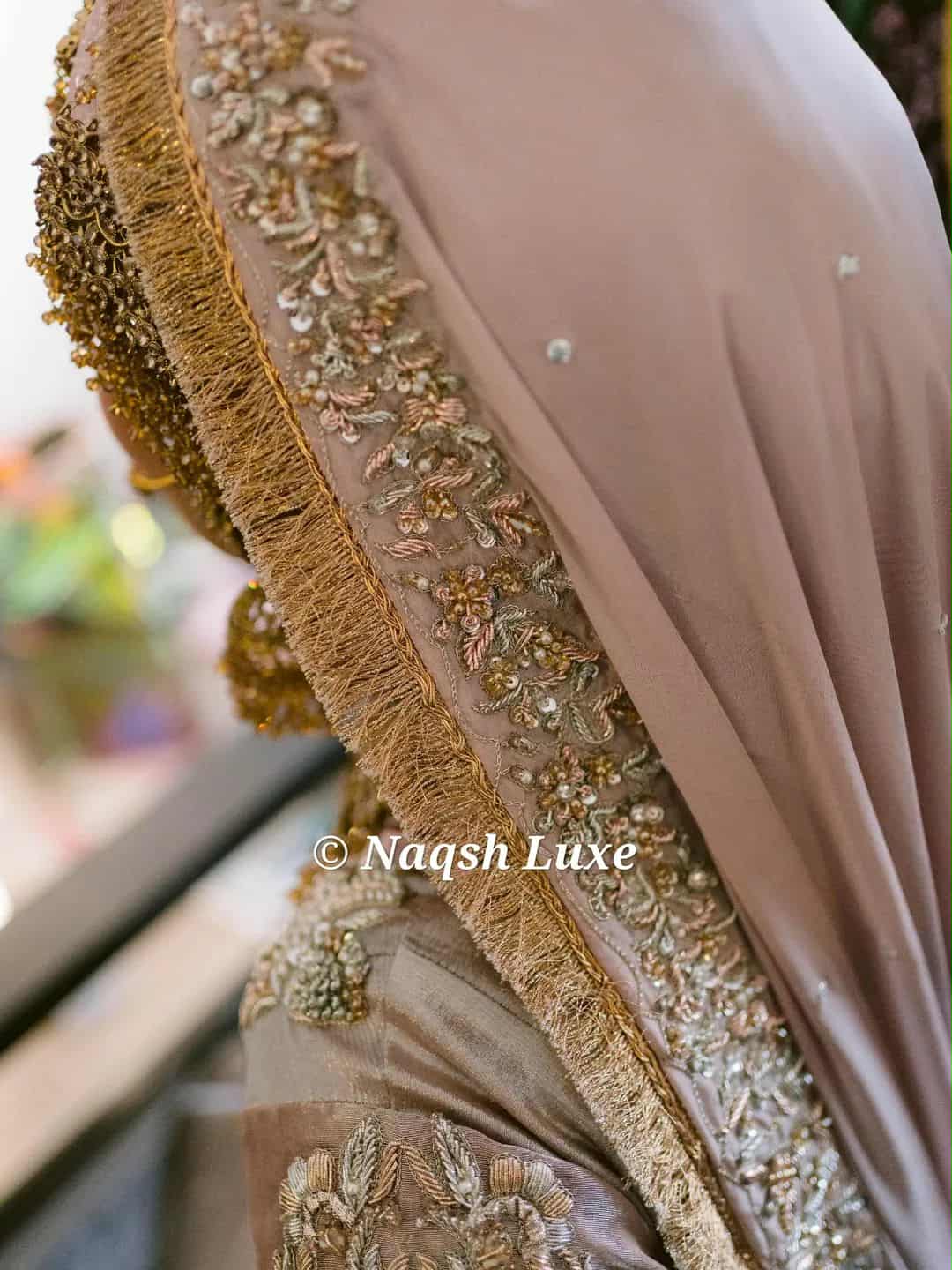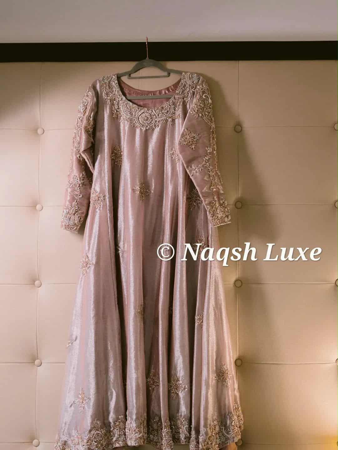 ‘The Pakistani dress is beautifully handcrafted with zari, kora, dabka, stones, pearls and sequins. All the embellishments are handsewn with double thread.