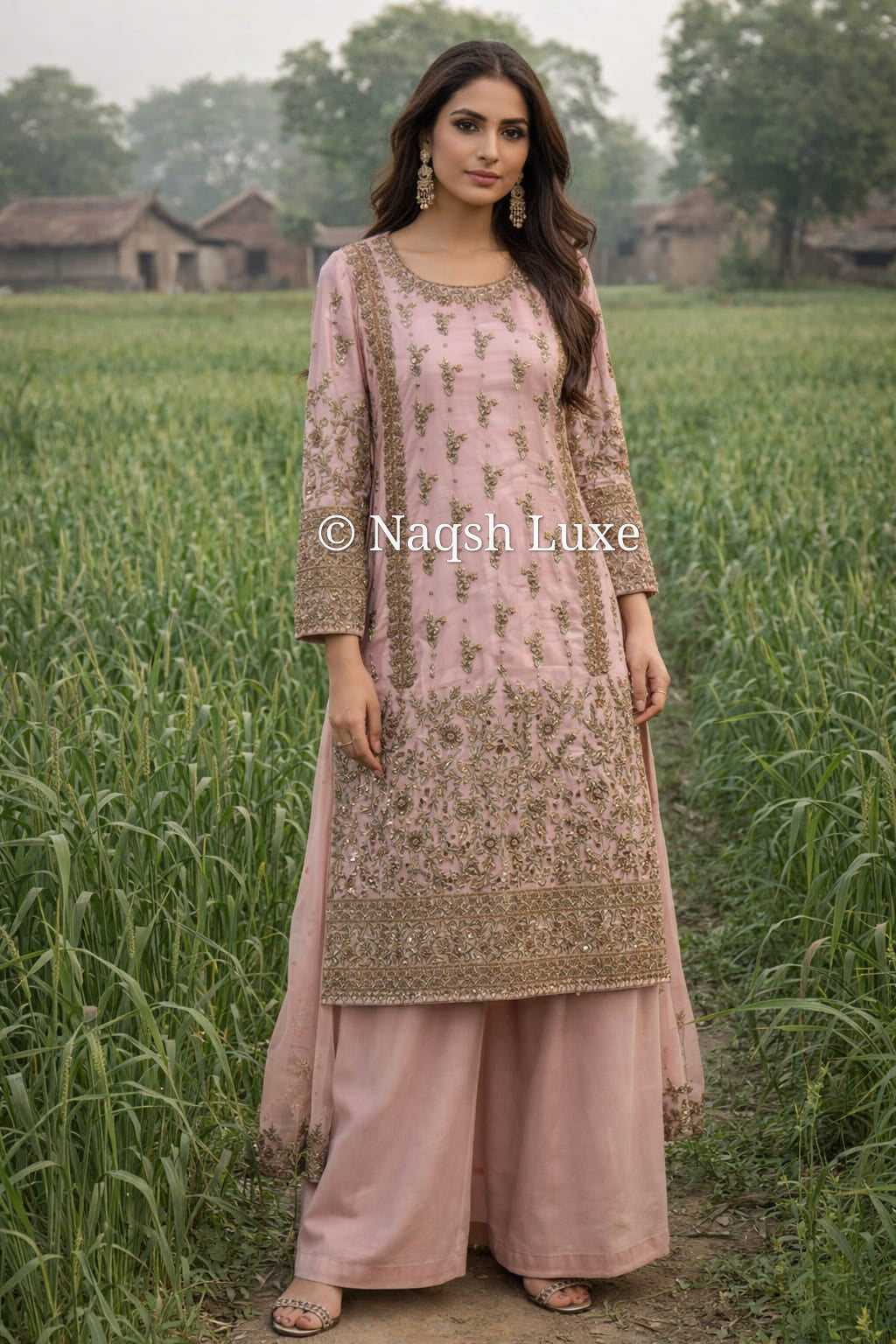 ‘The Pakistani dress is beautifully handcrafted with zari, kora, dabka, stones, pearls and sequins. All the embellishments are handsewn with double thread.