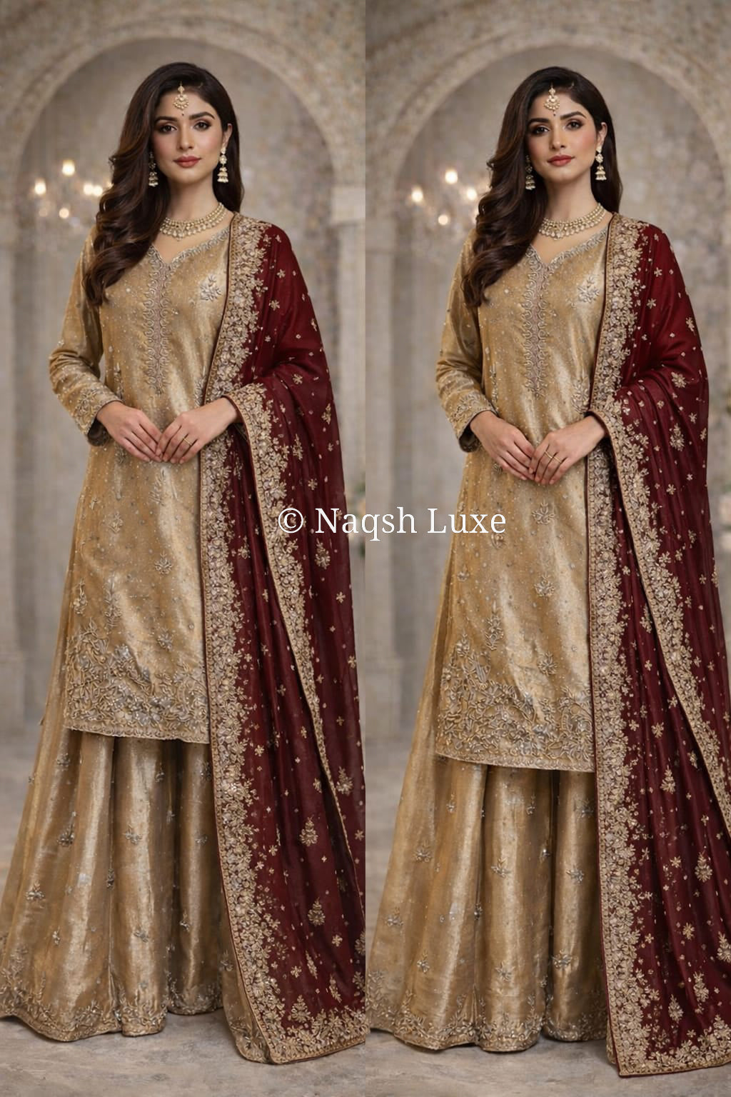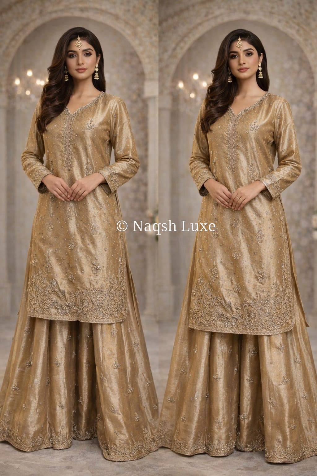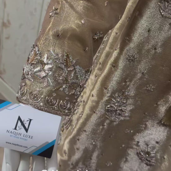 Materials Used: Dabka, zardozi, kora, sequins, crystals, pearls, tilla, stones, resham.