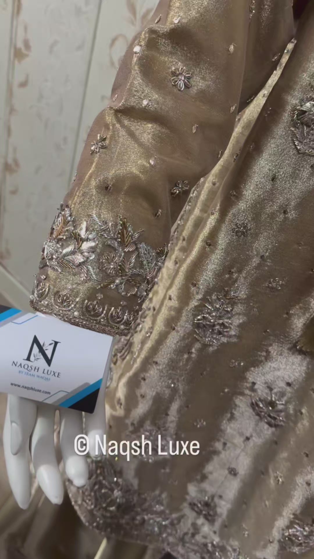 ‘The Pakistani dress is beautifully handcrafted with zari, kora, dabka, stones, pearls and sequins. All the embellishments are handsewn with double thread.