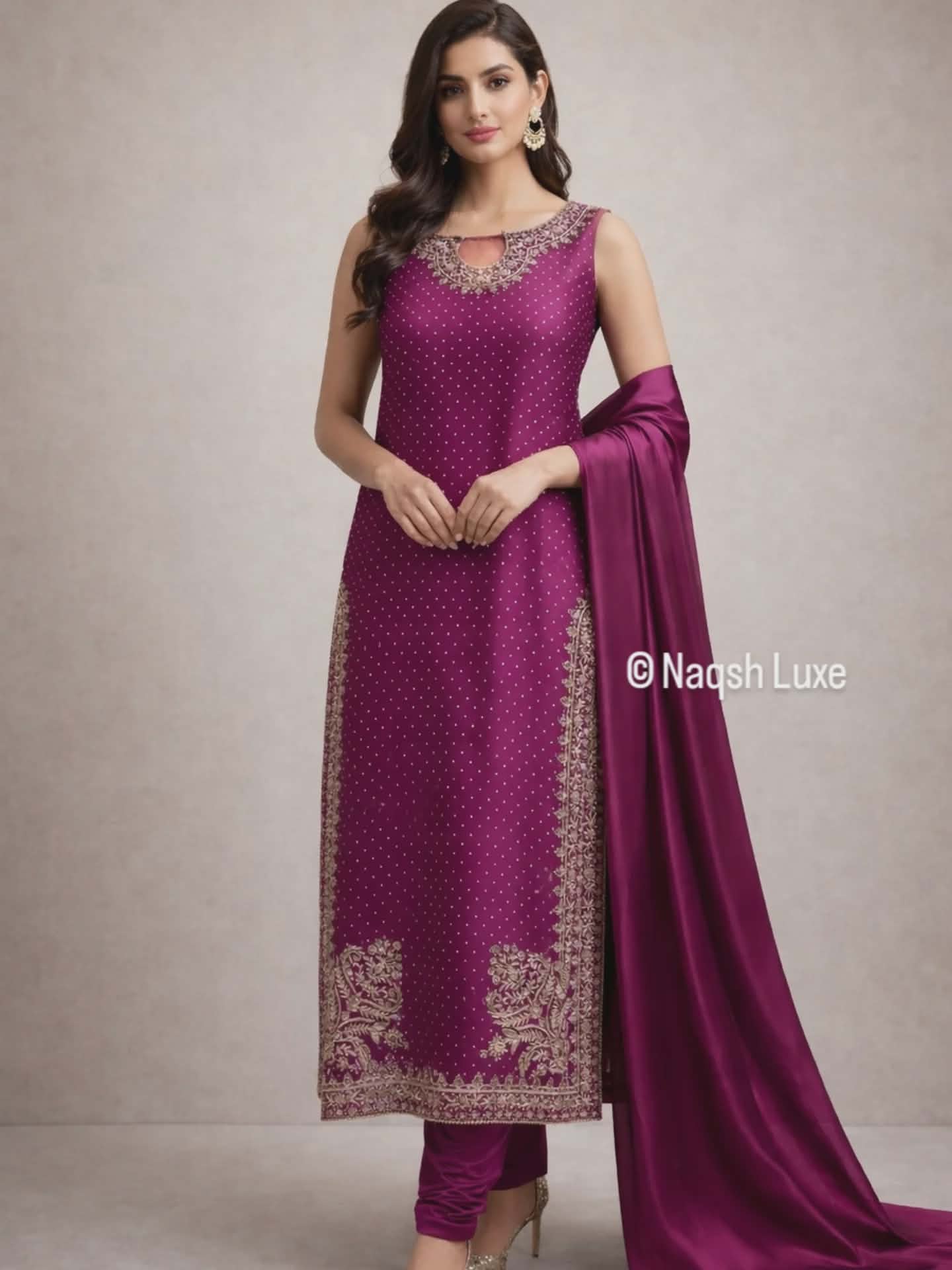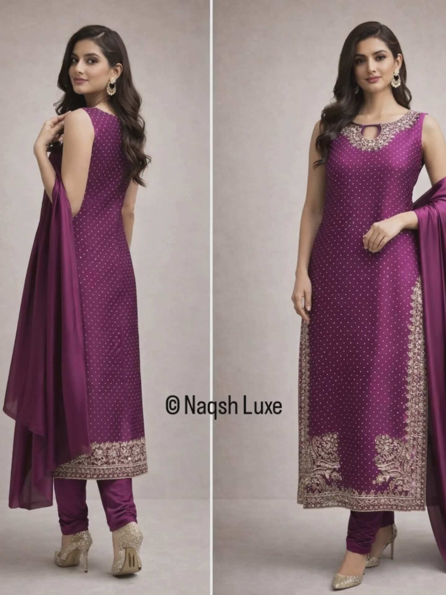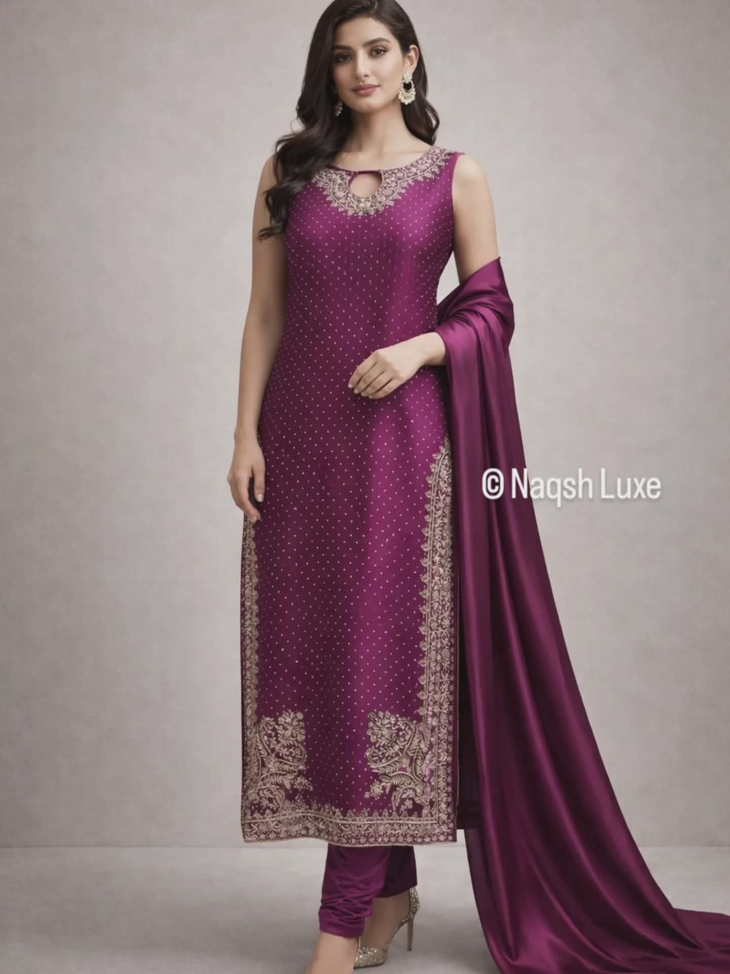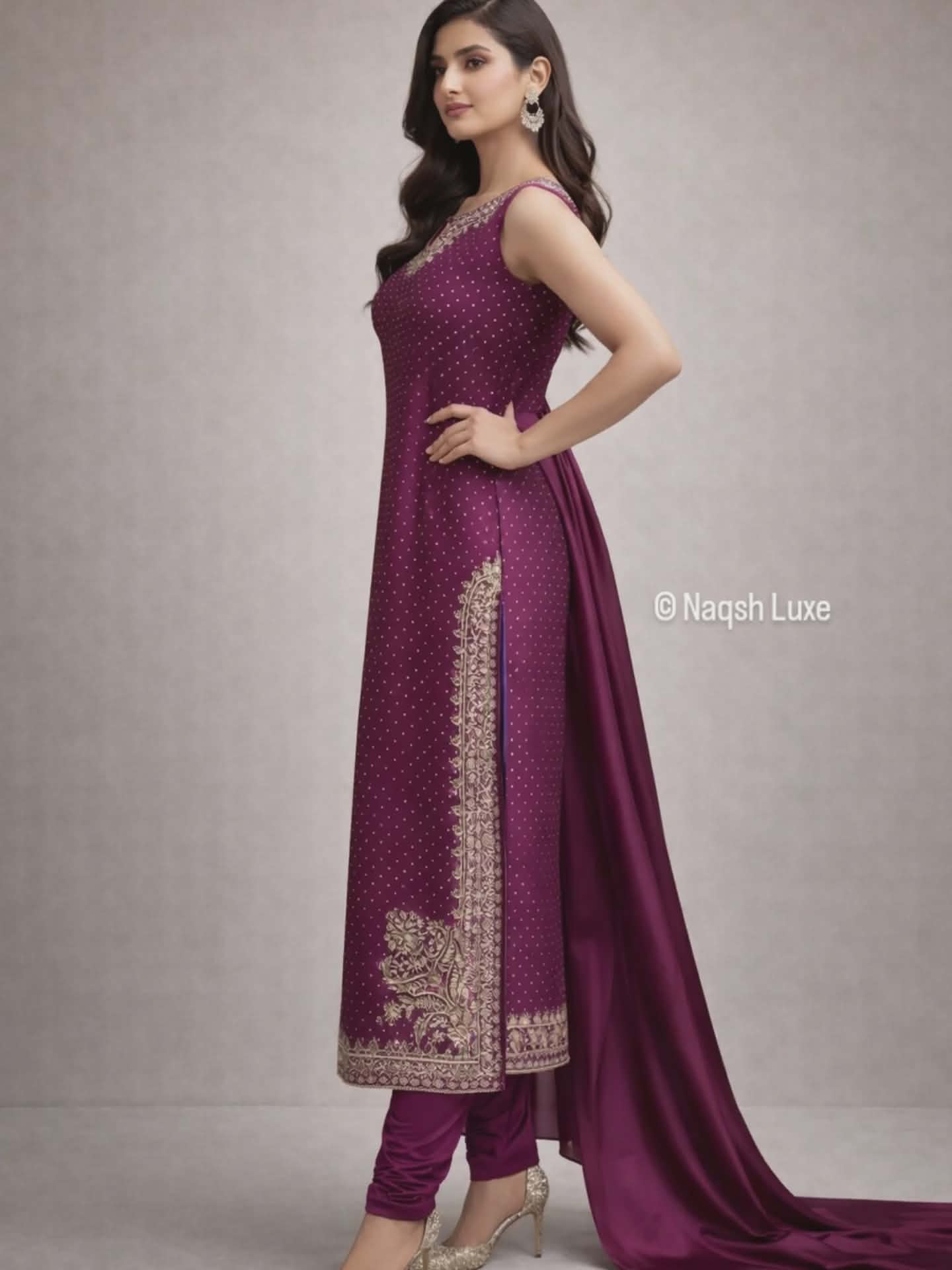 The Pakistani dress is beautifully handcrafted with zari, kora, dabka, stones, pearls and sequins. All the embellishments handsewn with double thread.
