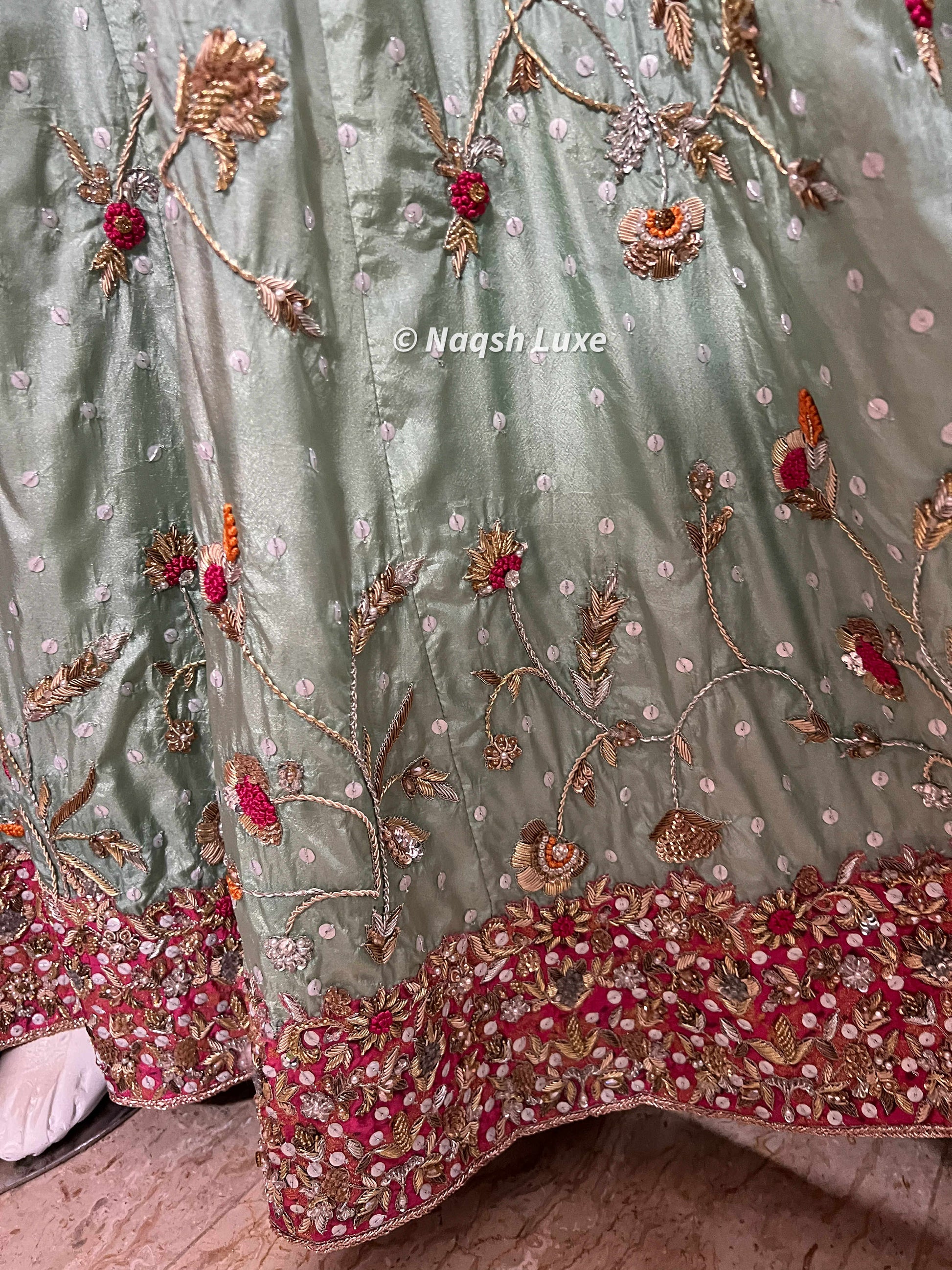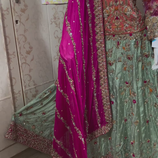 ‘The Pakistani dress is beautifully handcrafted with zari, kora, dabka, stones, pearls and sequins. All the embellishments are handsewn with double thread.
