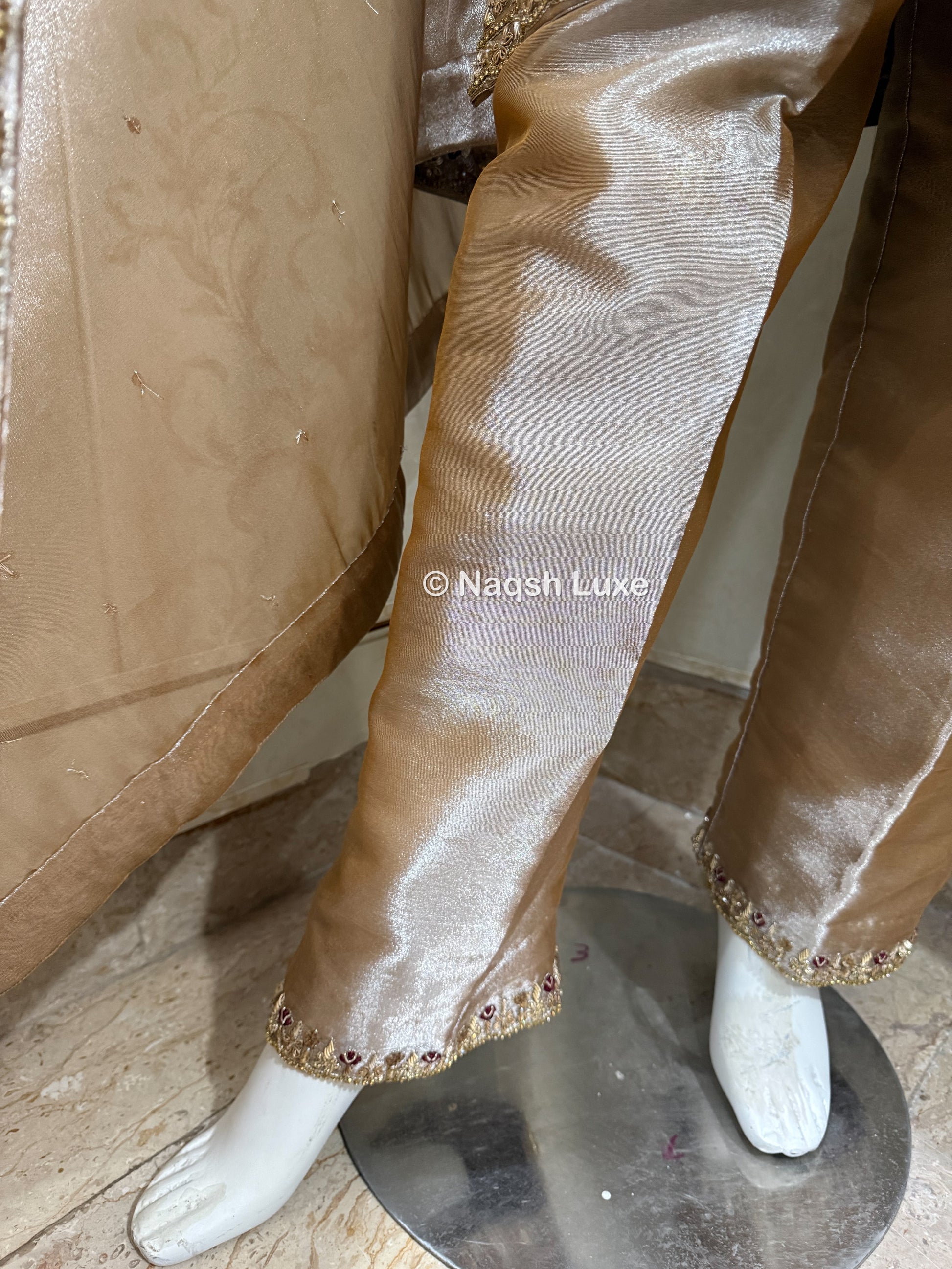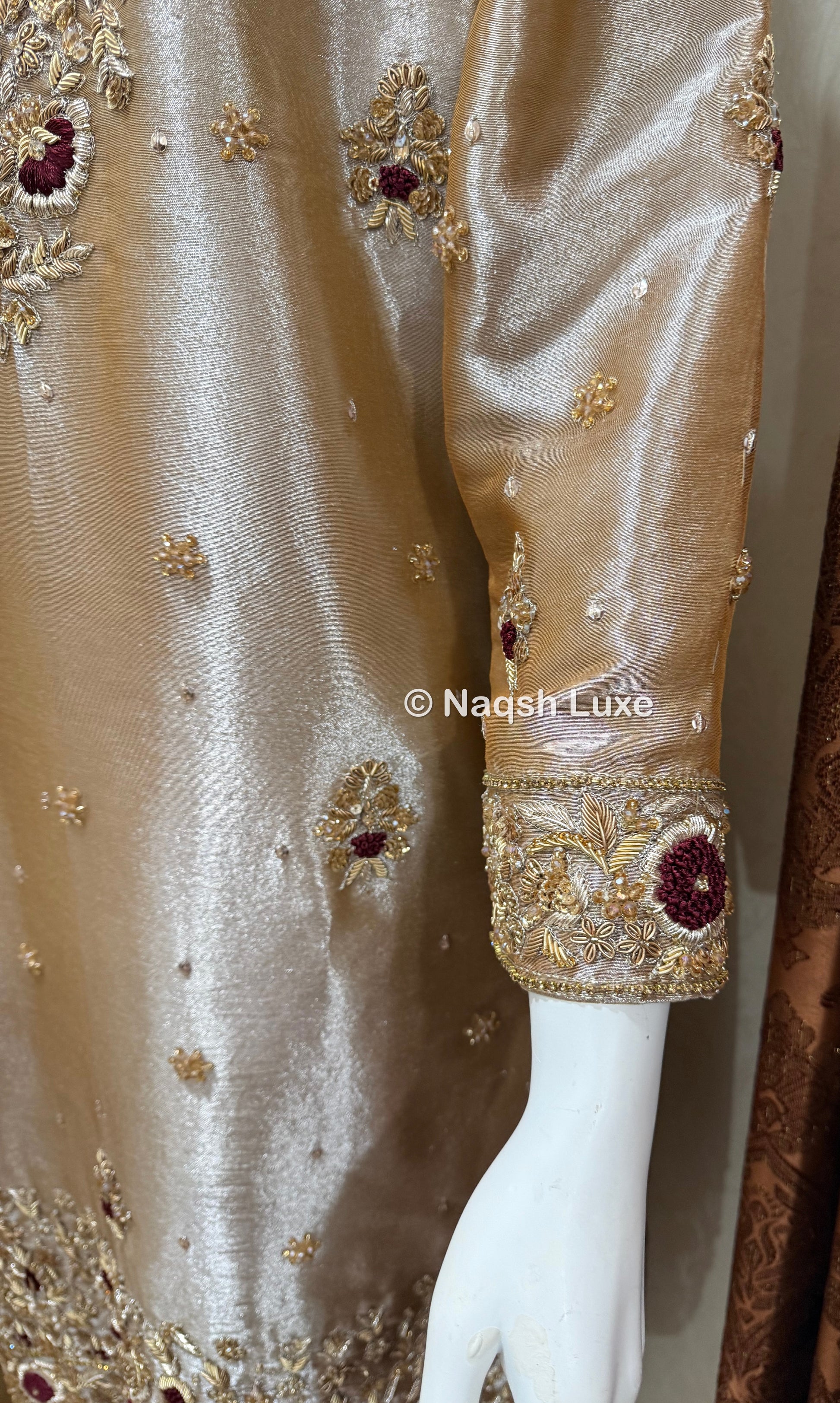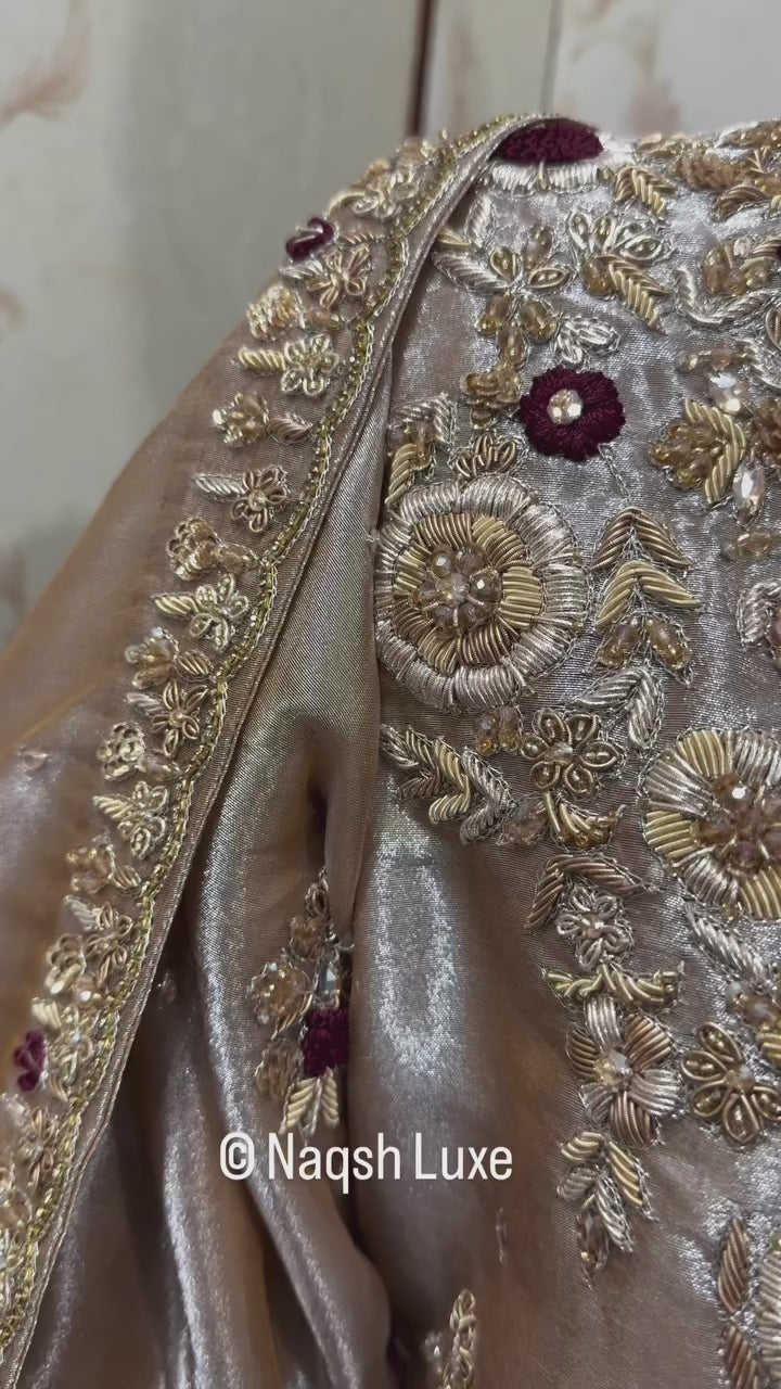Materials Used: Dabka, zardozi, kora, sequins, crystals, pearls, tilla, stones.