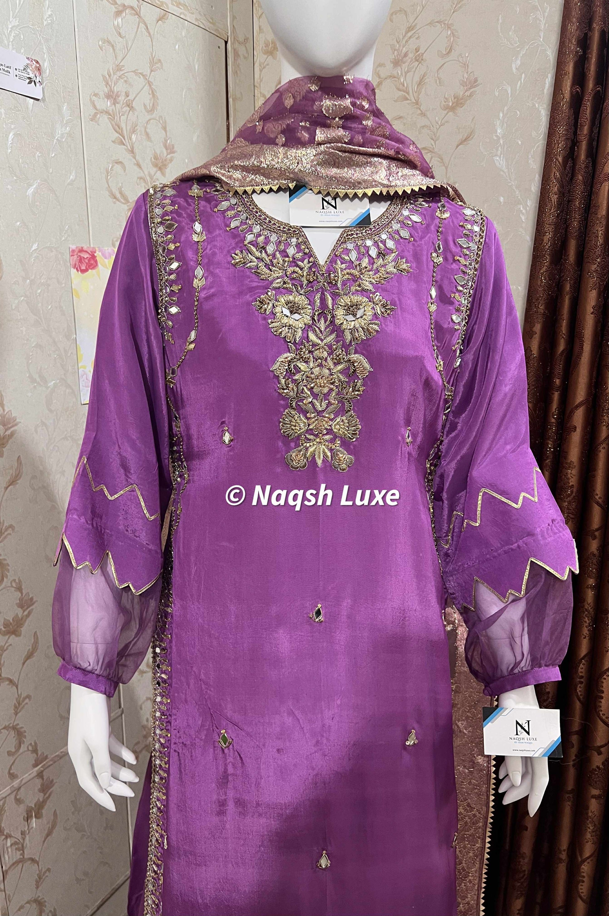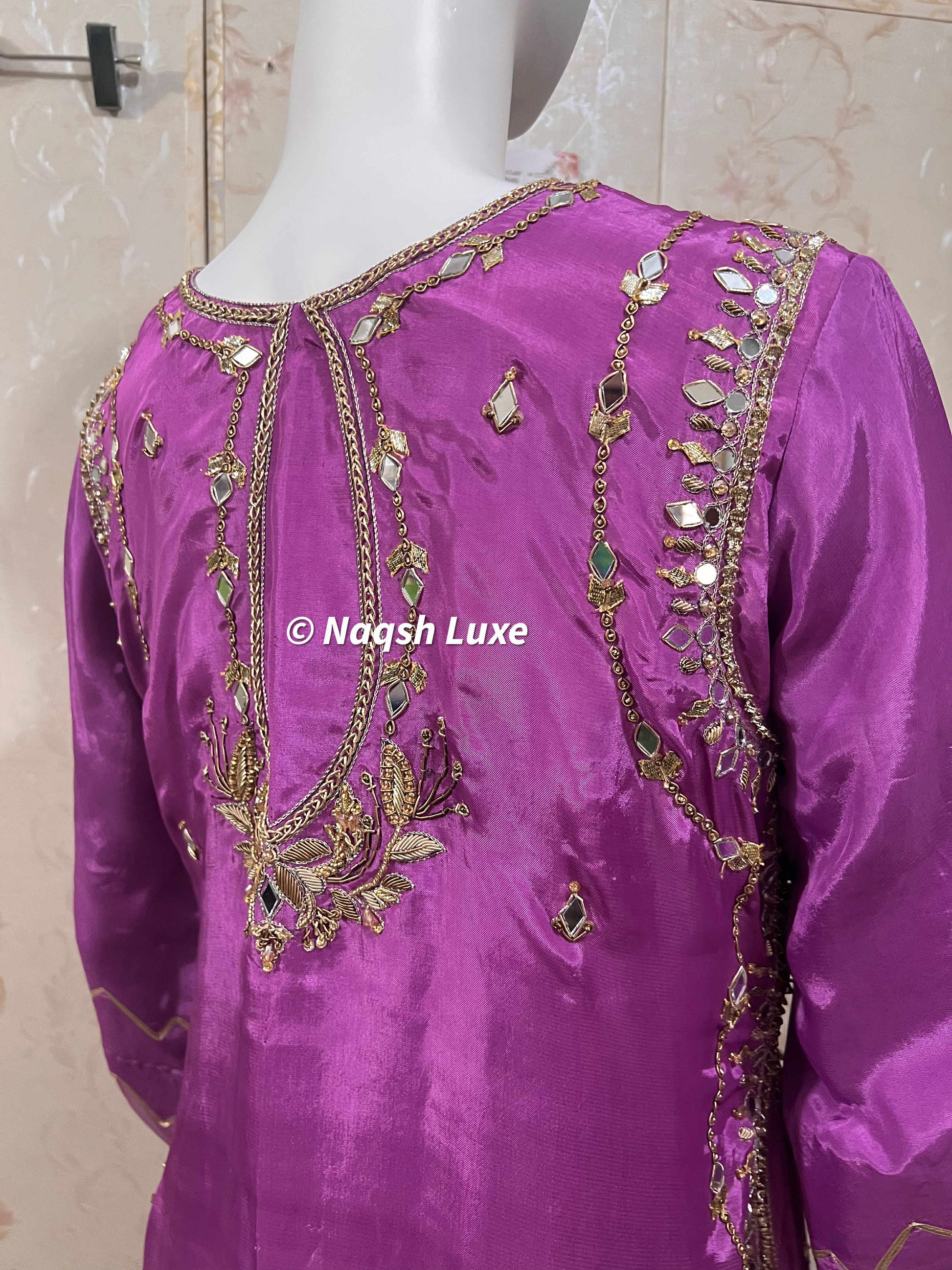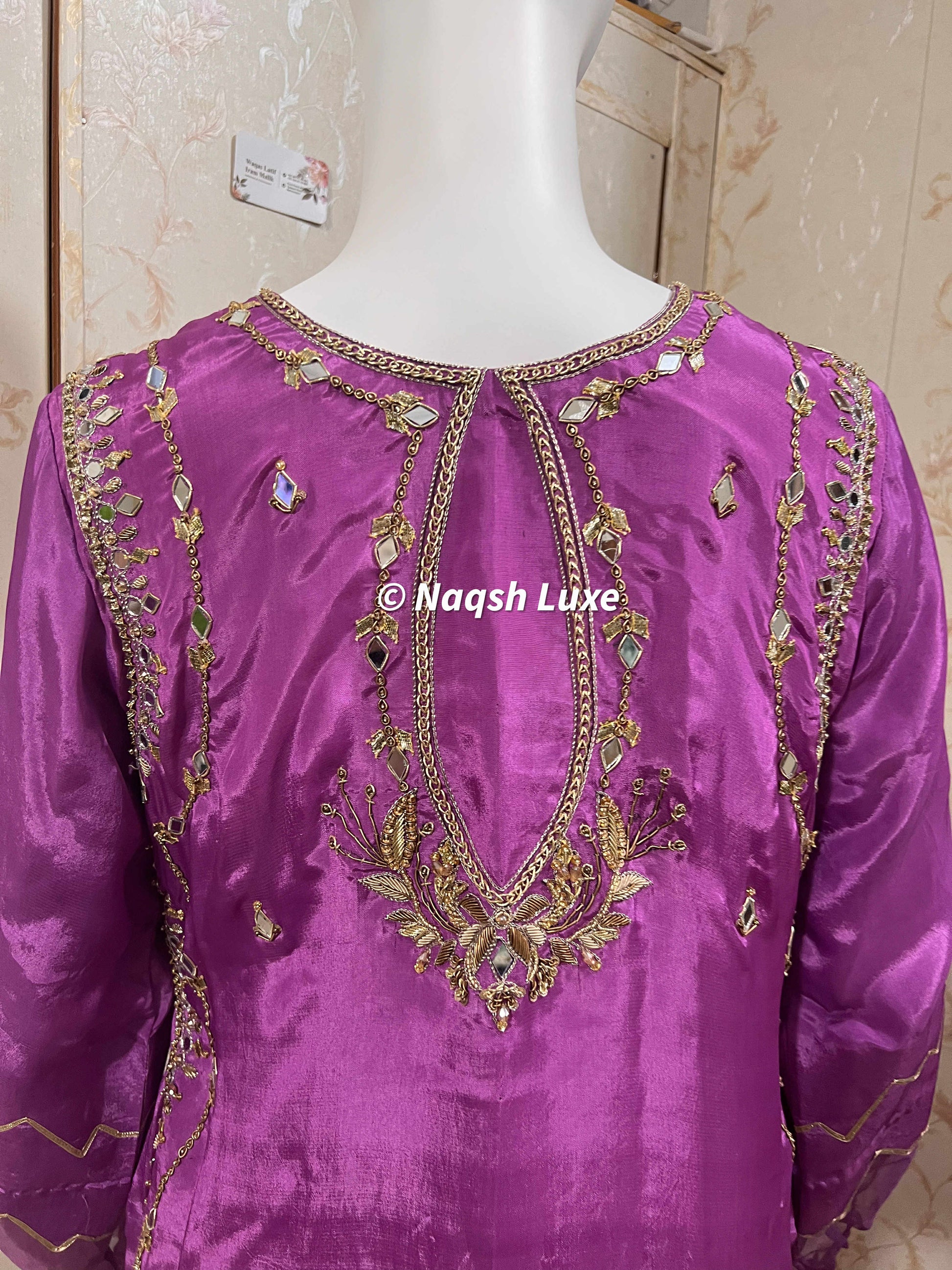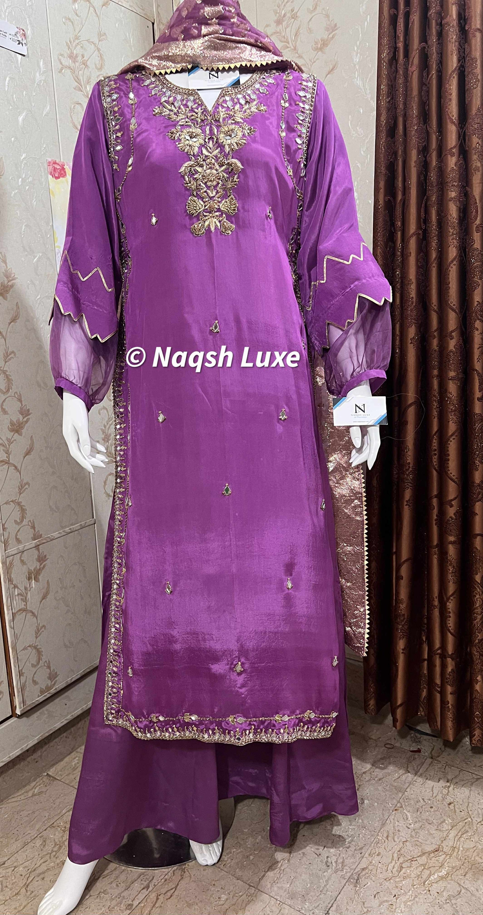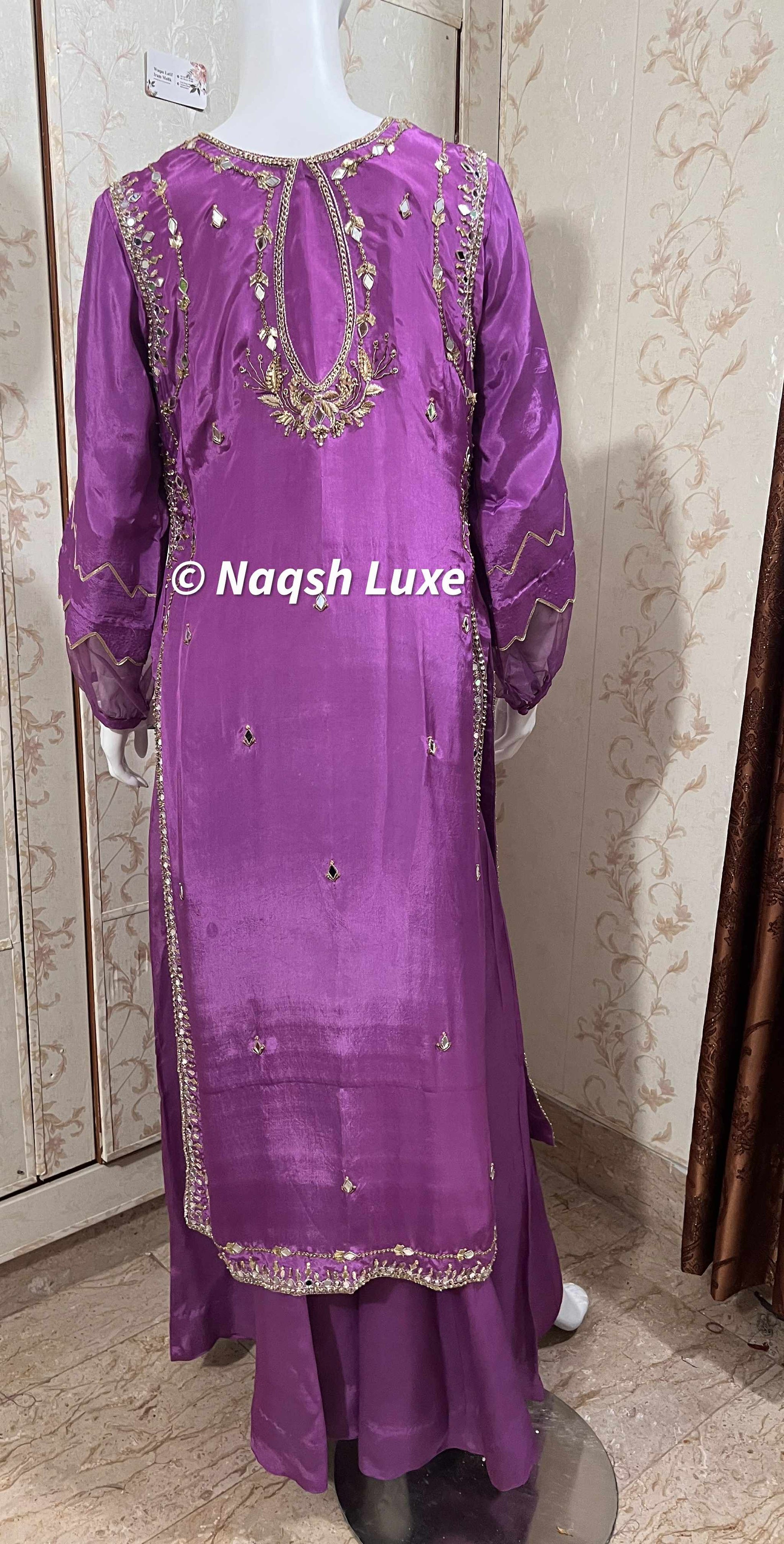 ‘The Pakistani dress is beautifully handcrafted with zari, kora, dabka, stones, pearls and sequins. All the embellishments are handsewn with double thread.