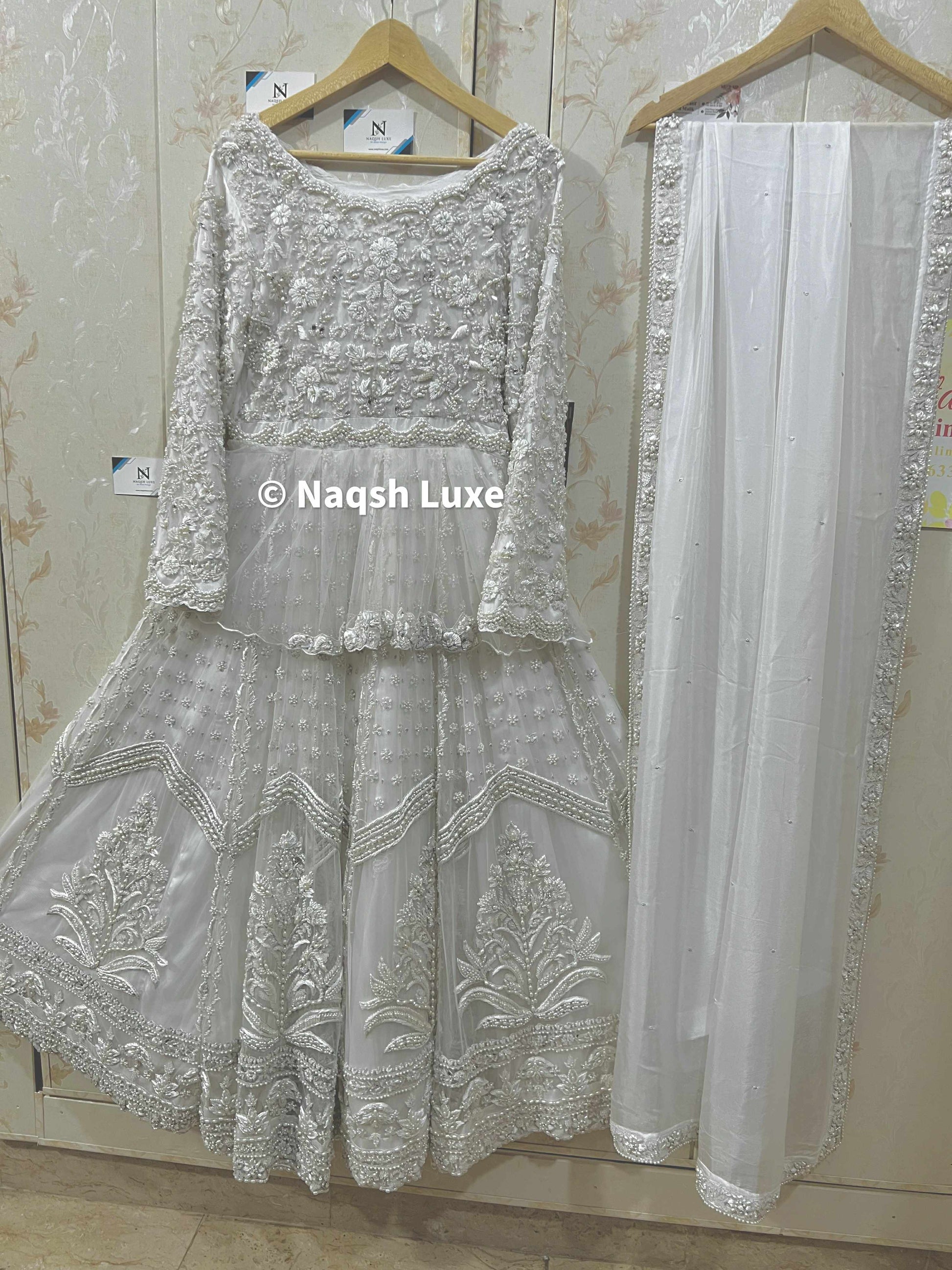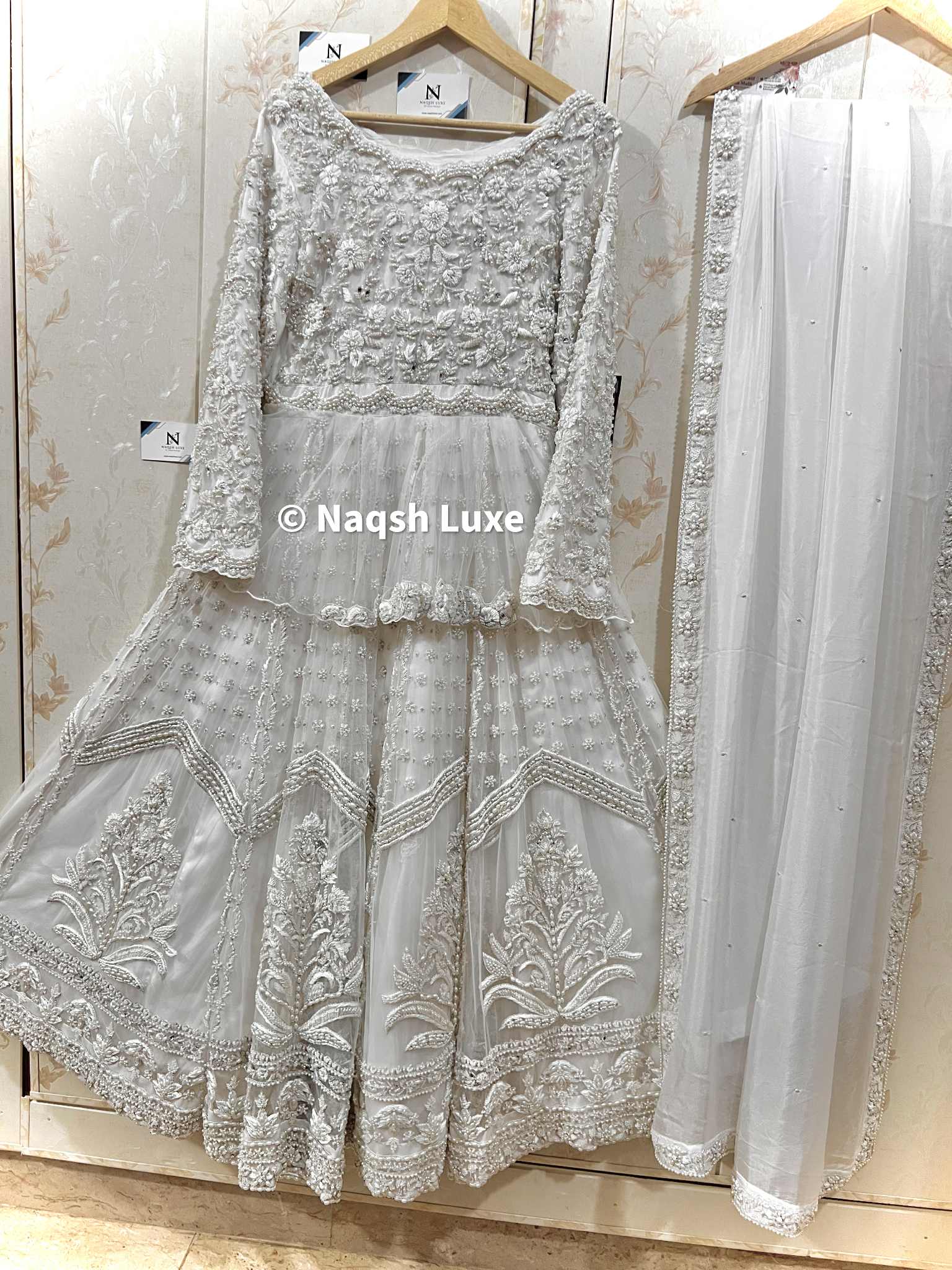 The Pakistani Dress is beautifully handcrafted with zari, kora, dabka, stones, pearls and sequins. All the embellishments are handsewn with double thread.