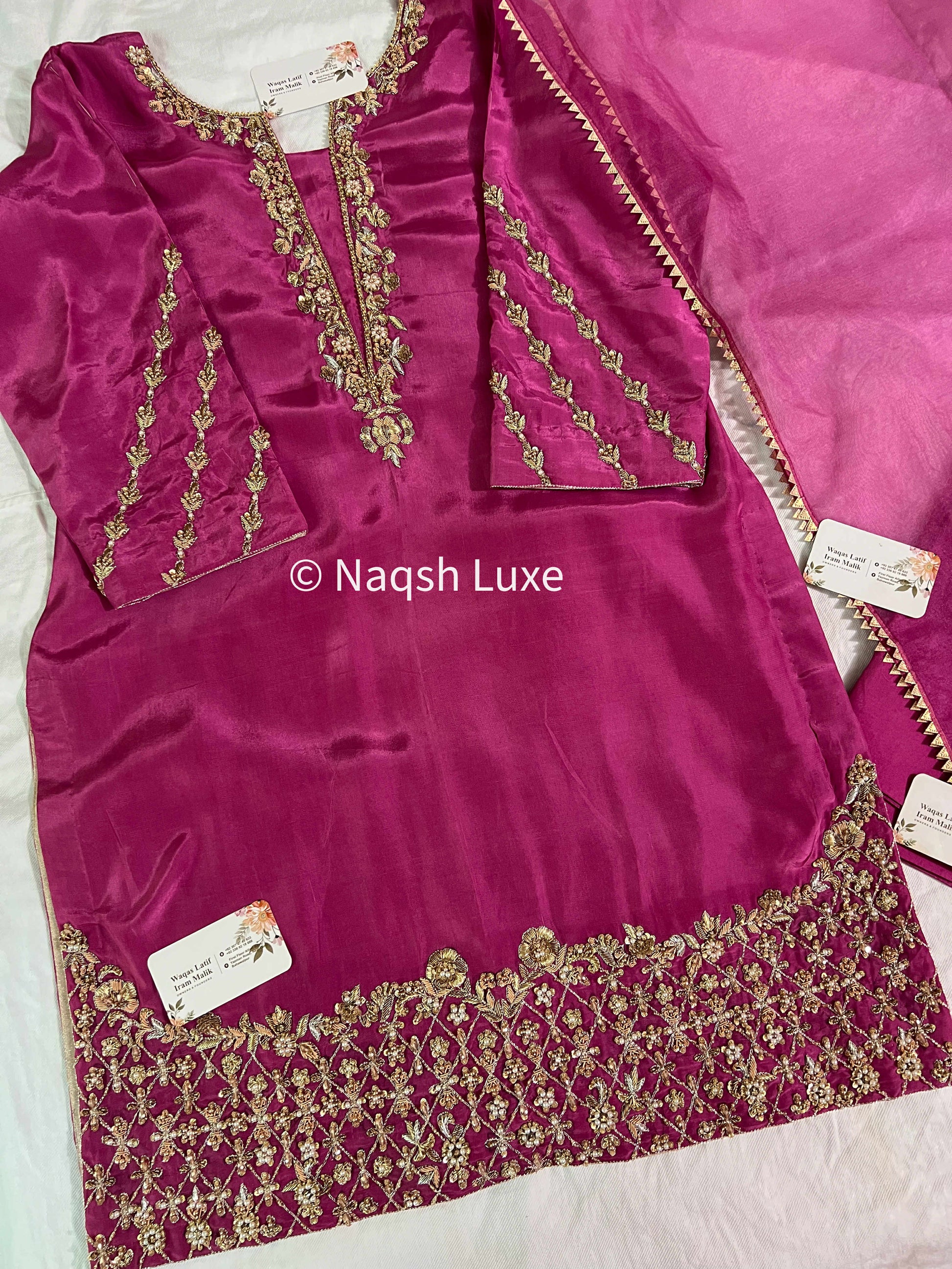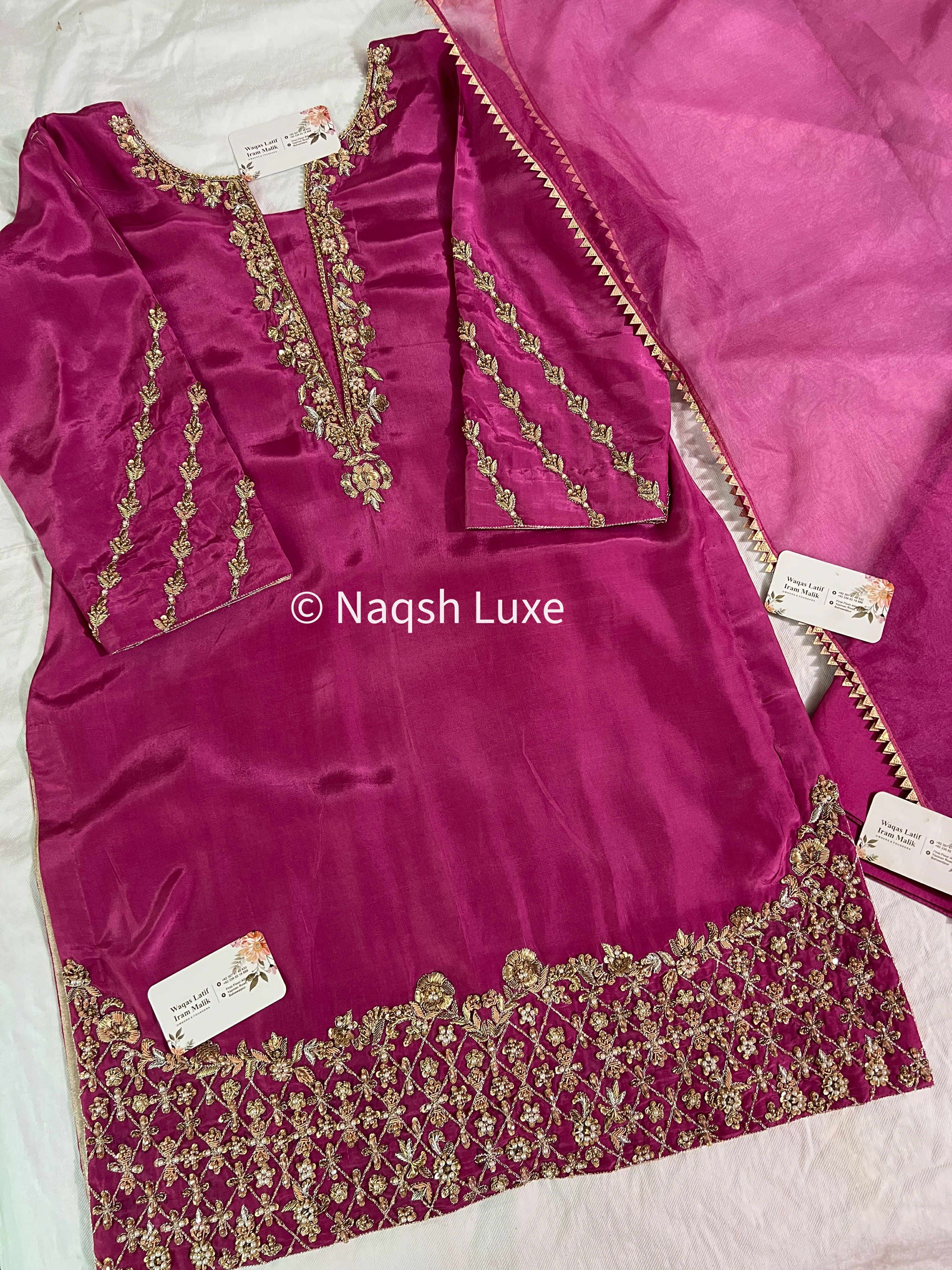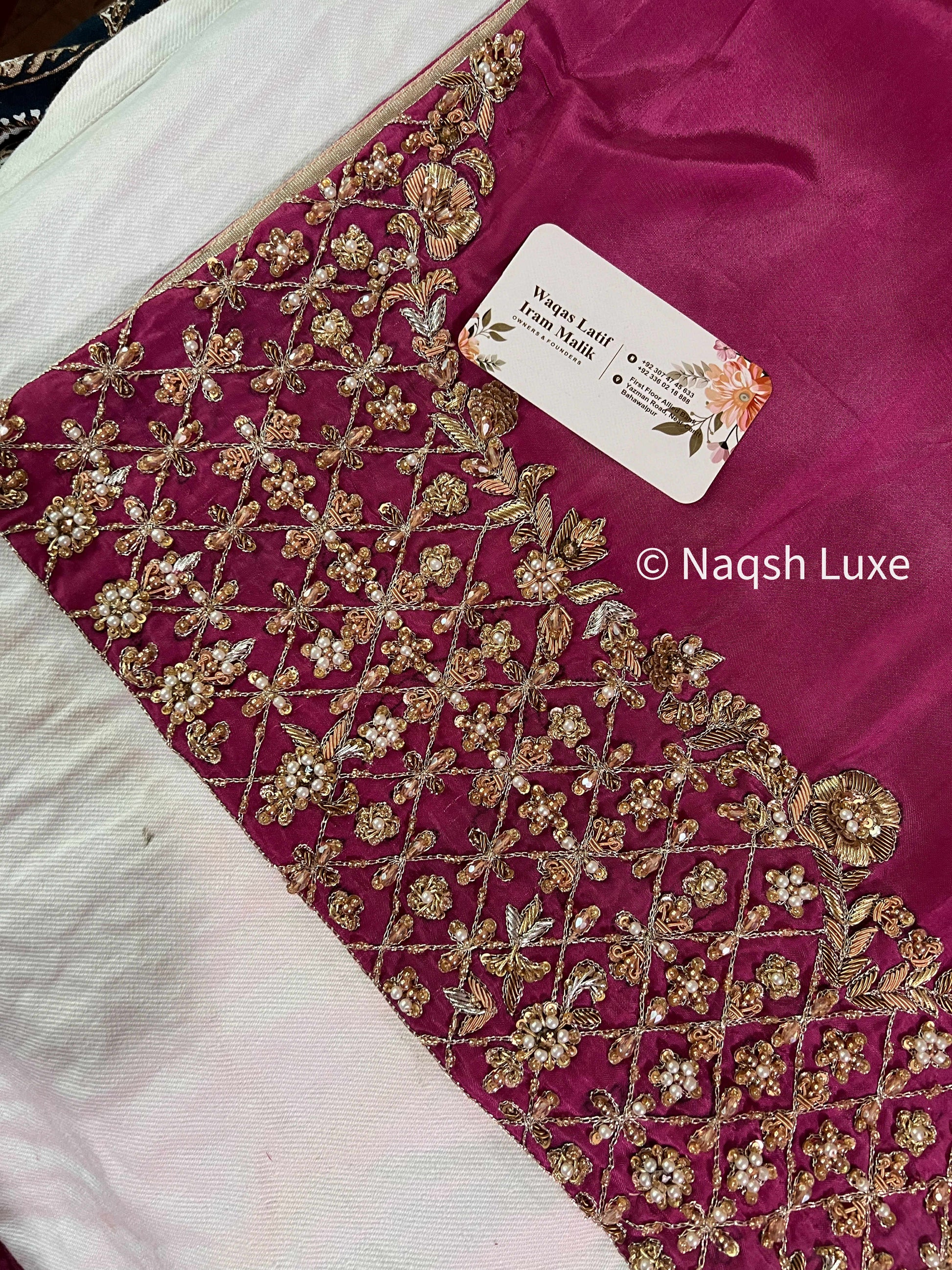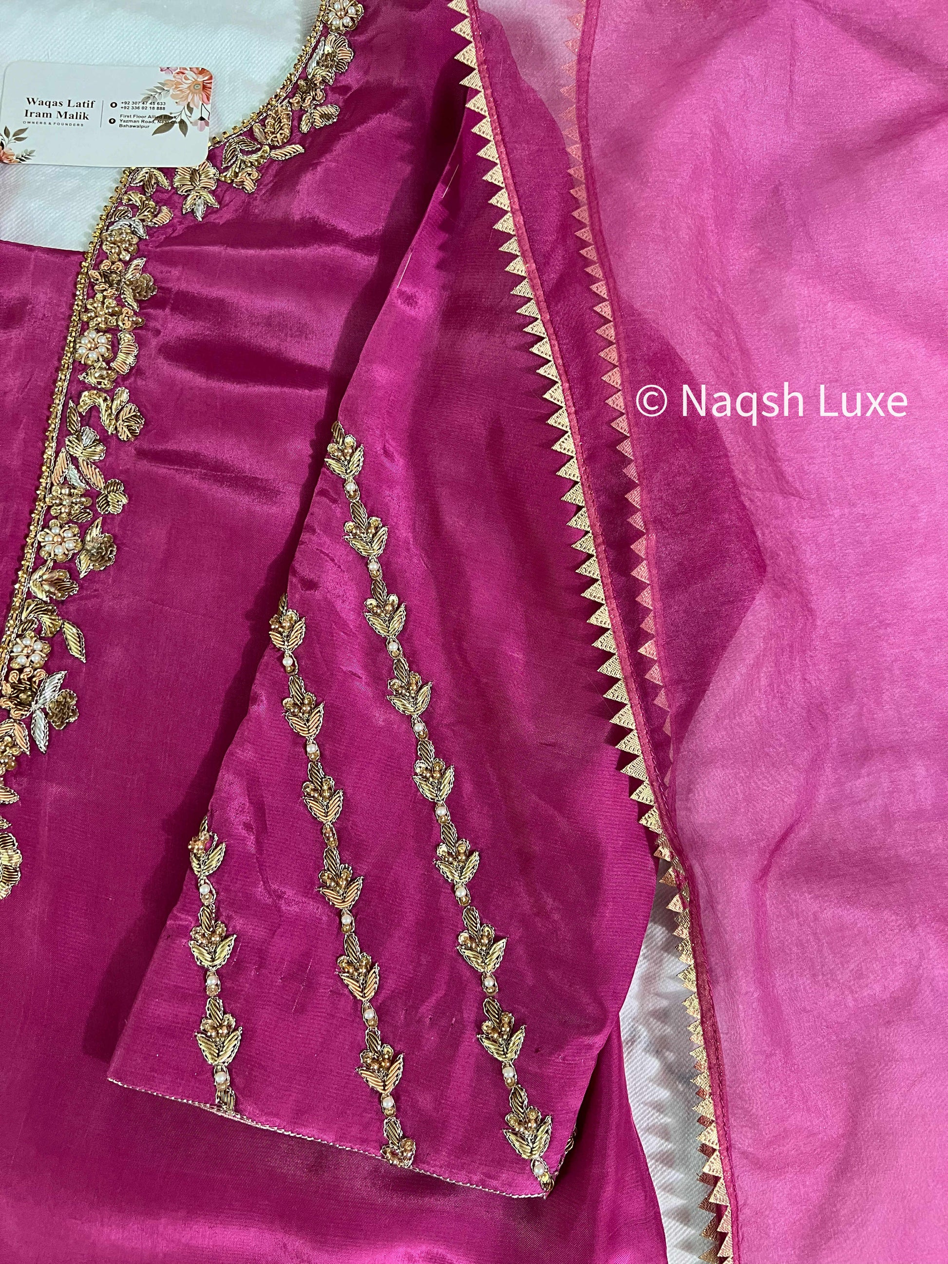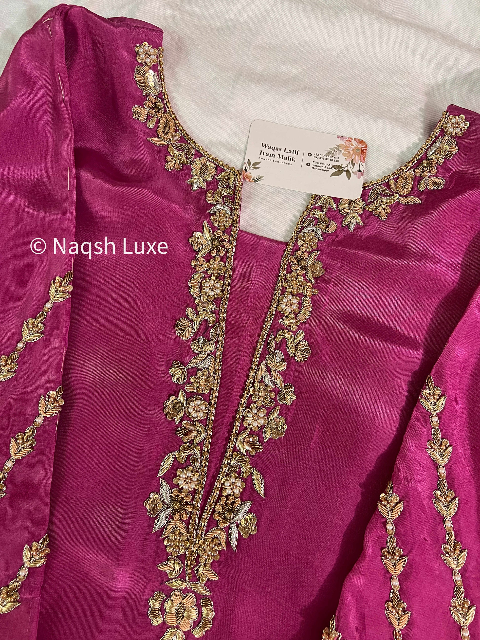 ‘The Pakistani Dress is beautifully handcrafted with zari, kora, dabka, stones, pearls and sequins. All the embellishments are handsewn with double thread.