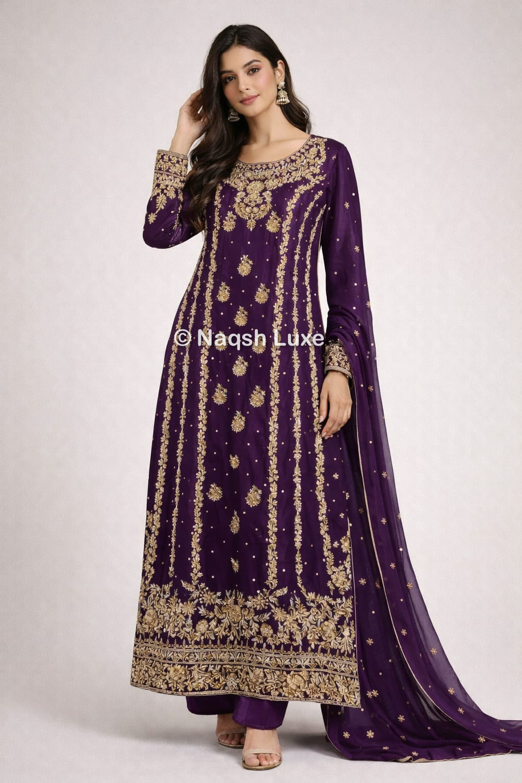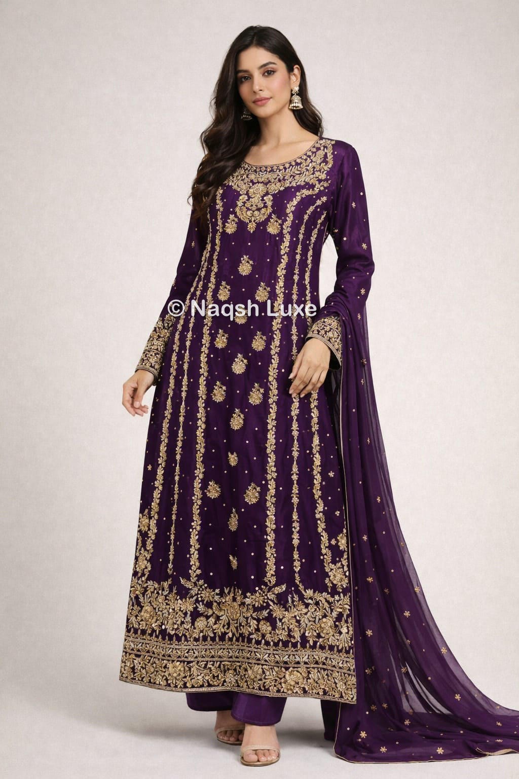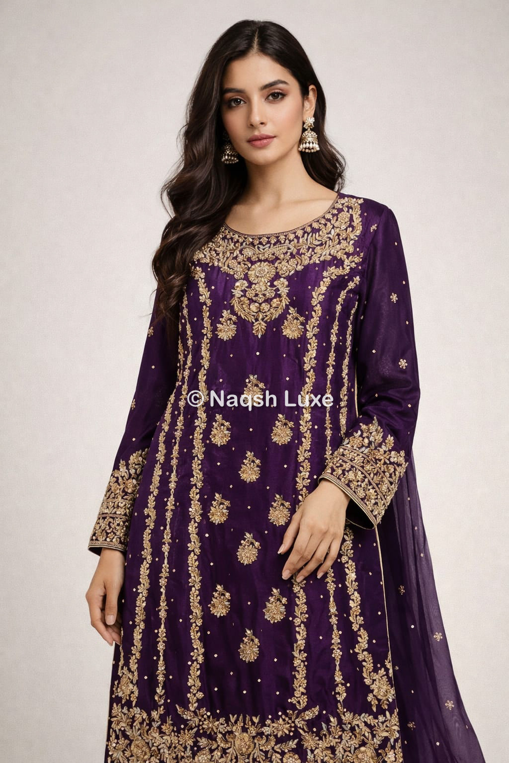 Materials Used: Dabka, zardozi, kora, sequins, crystals, pearls, tilla, stones.