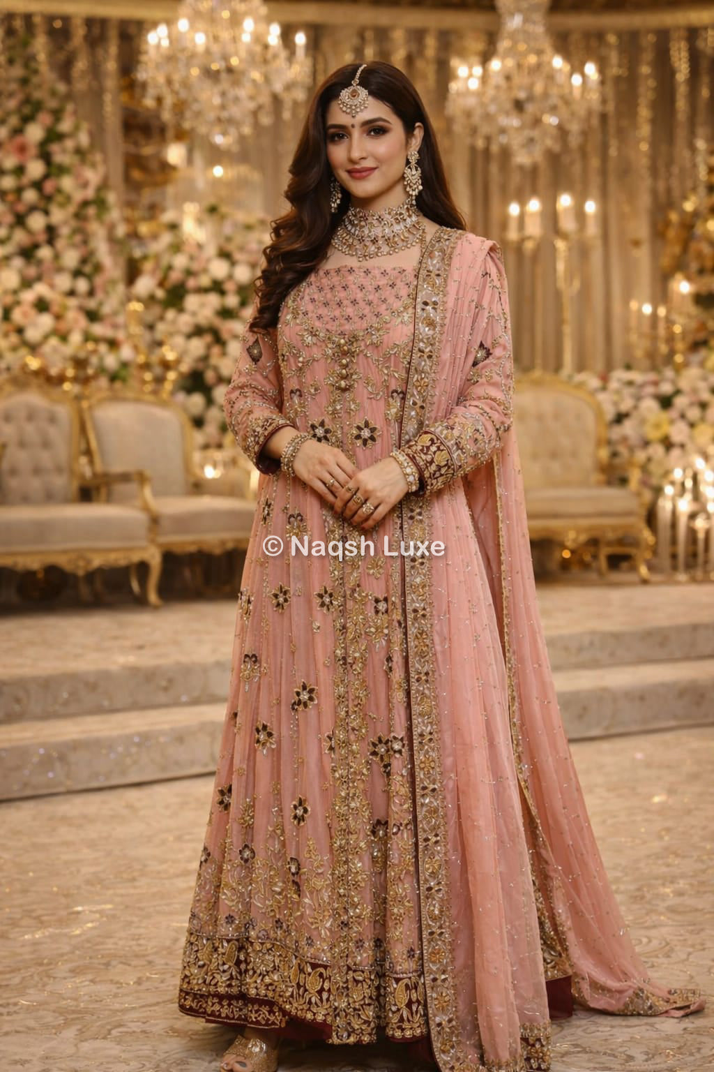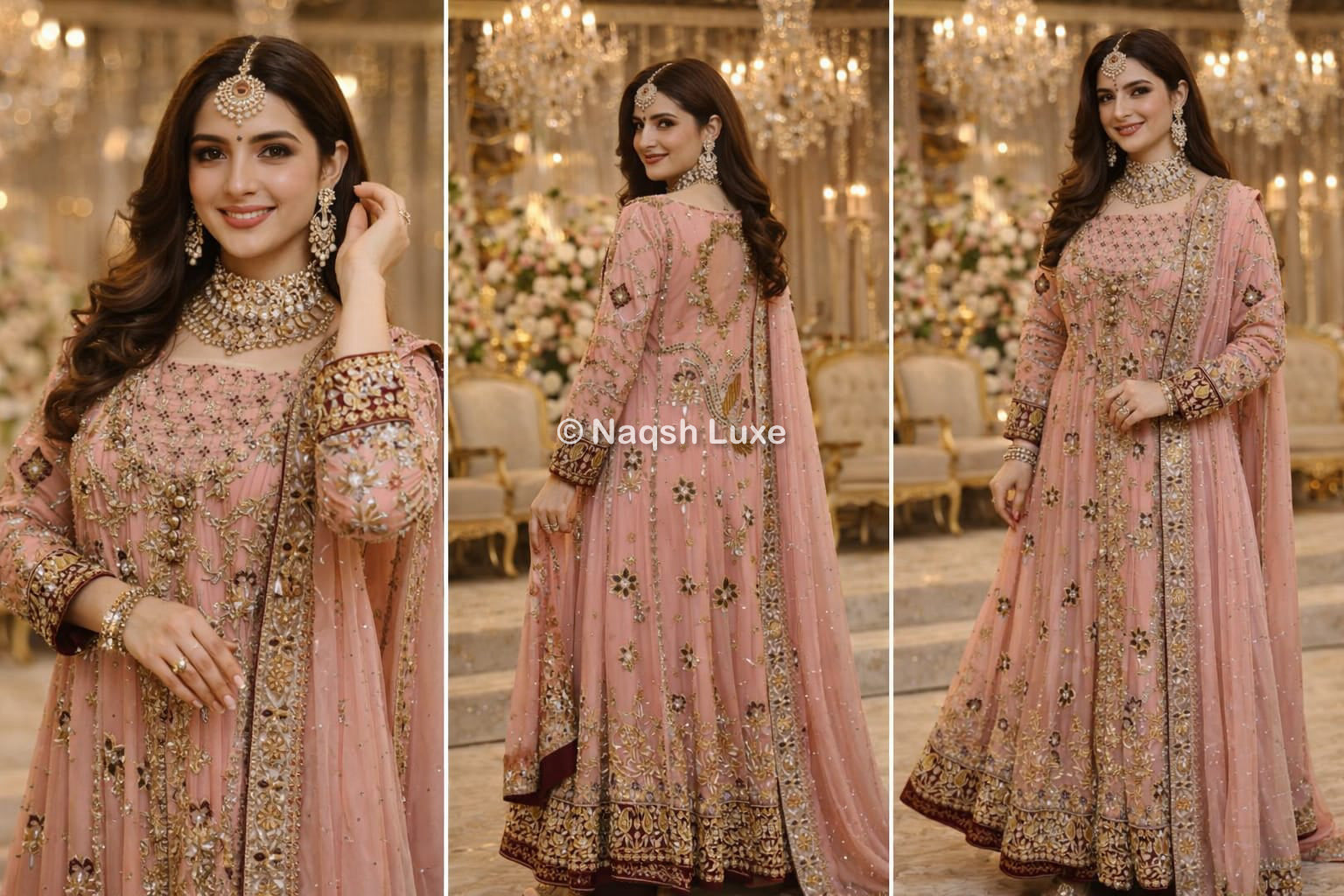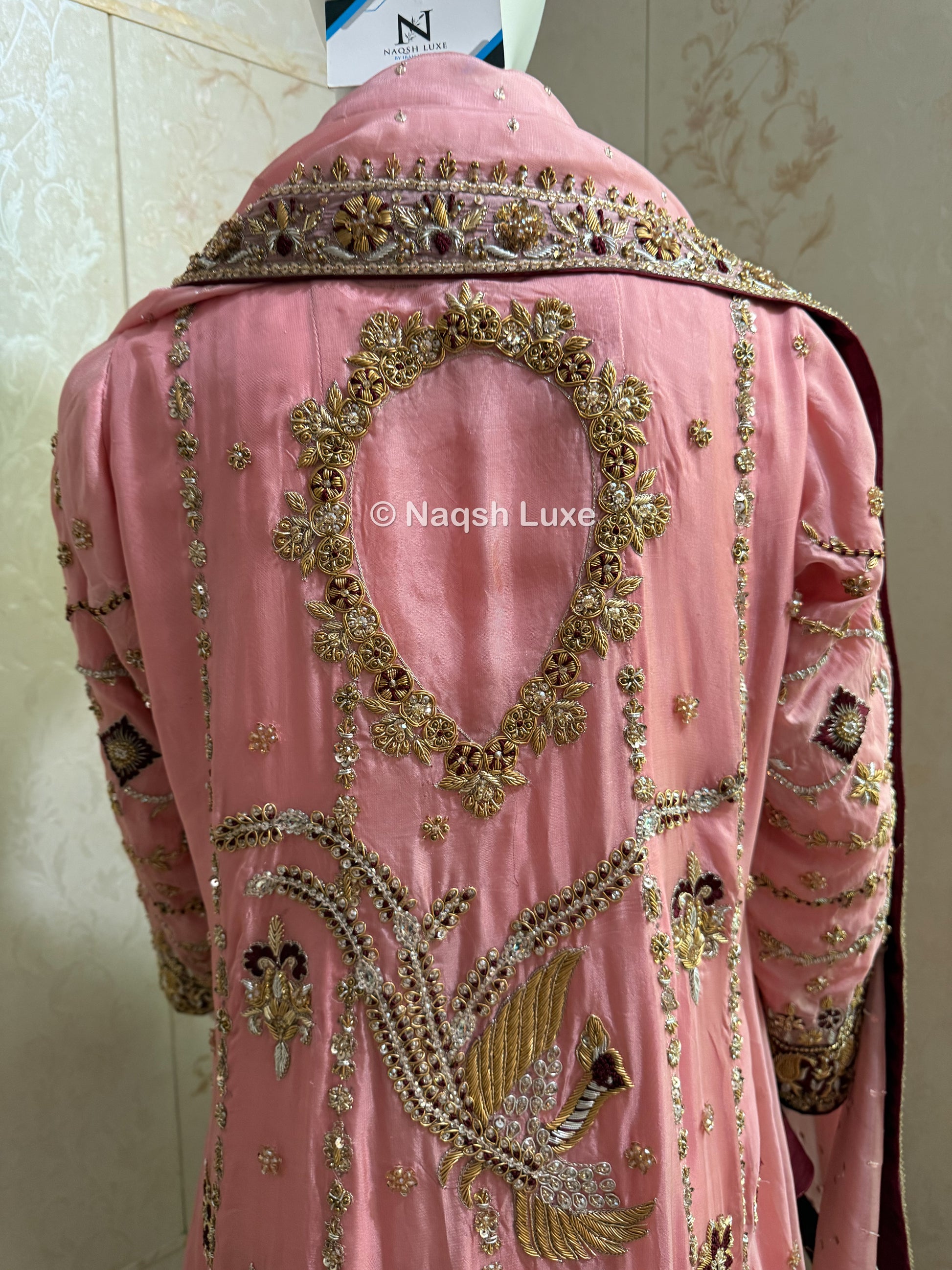 Materials Used: Dabka, zardozi, kora, sequins, crystals, pearls, tilla, stones.