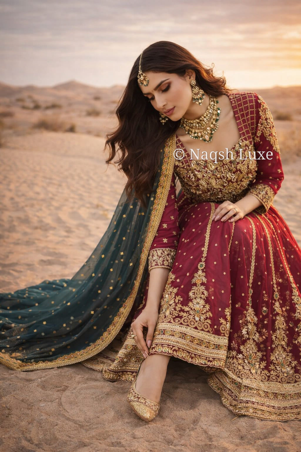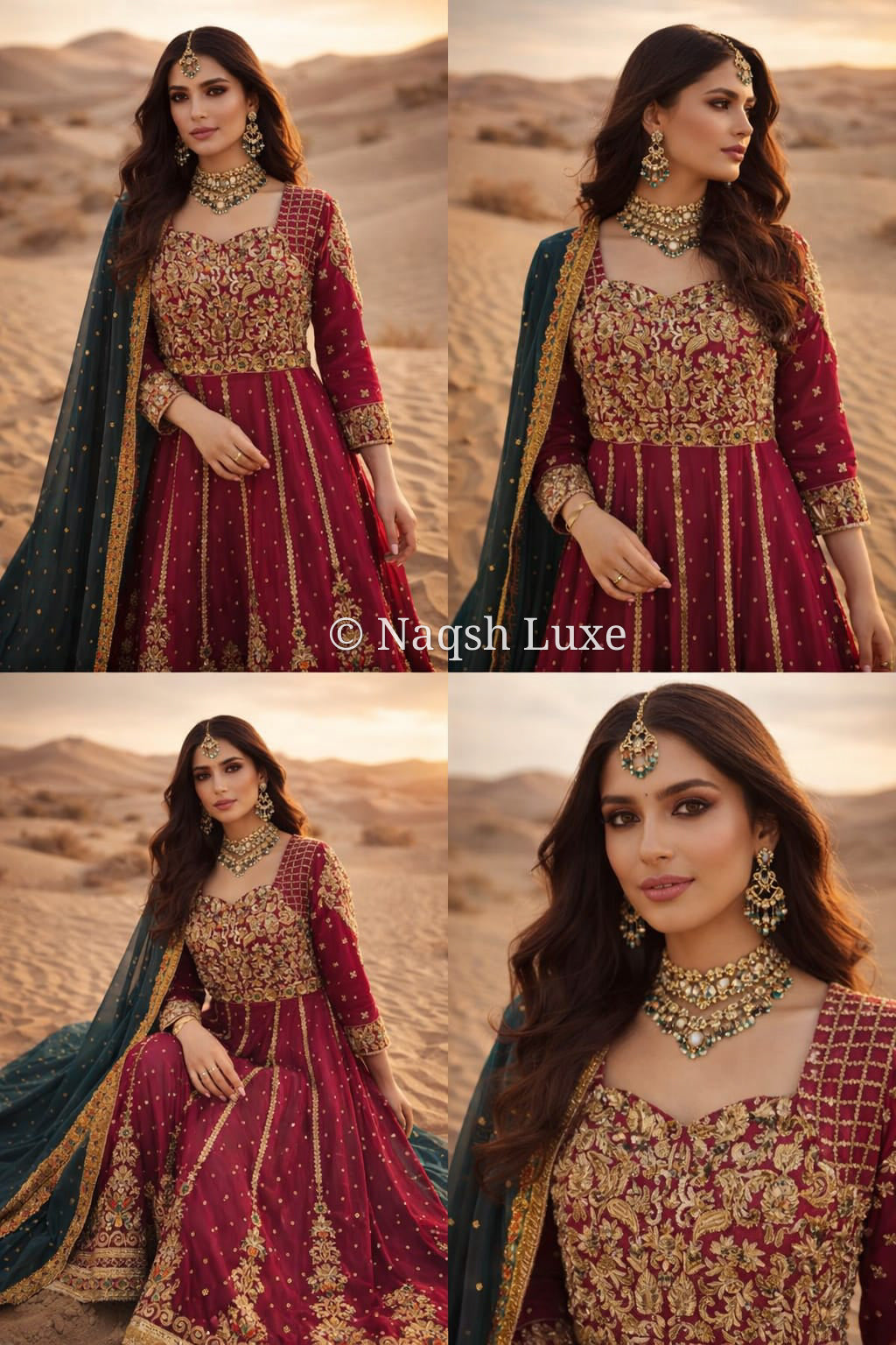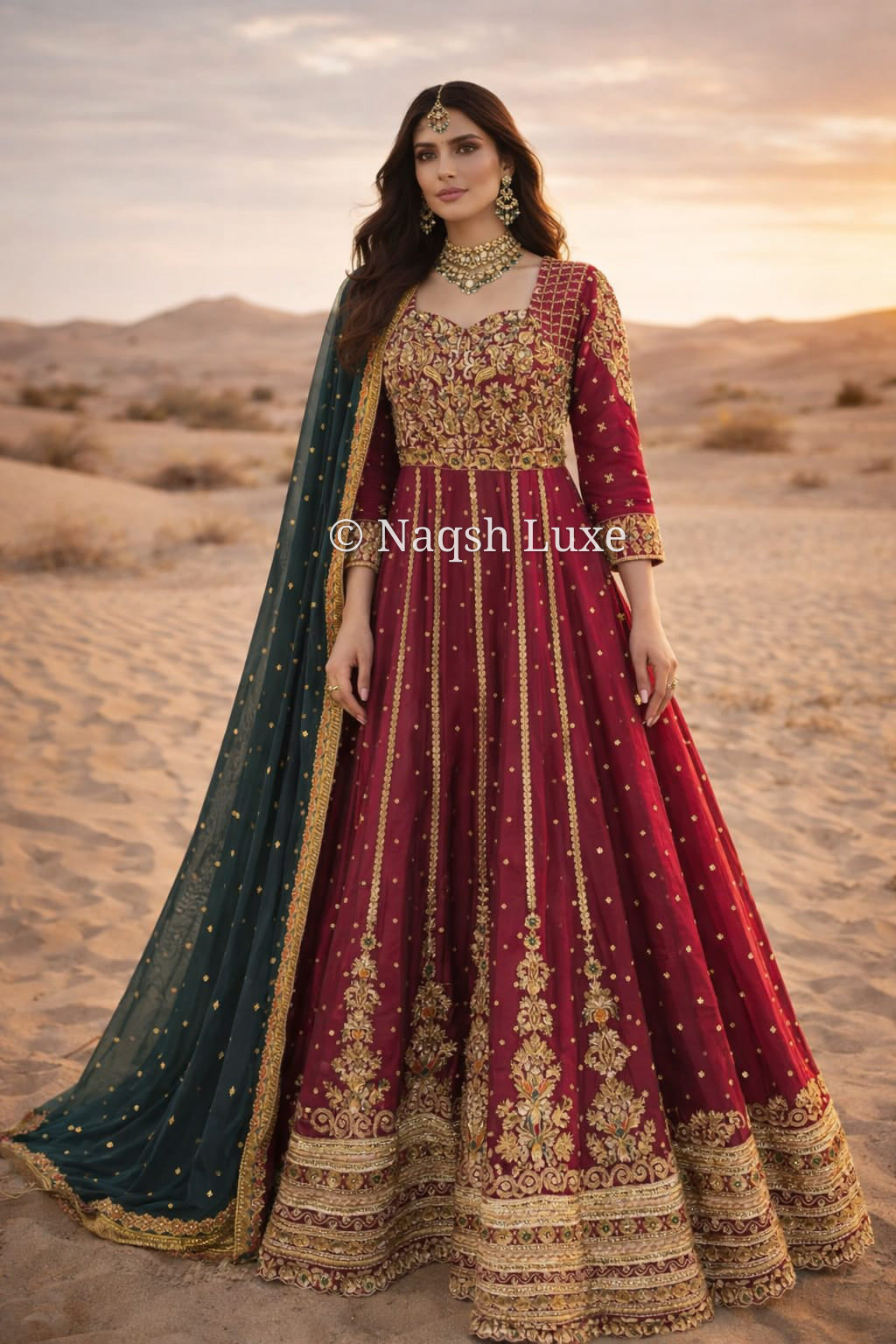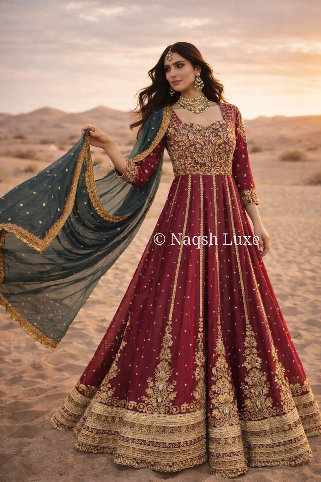Materials Used: Dabka, zardozi, kora, sequins, crystals, pearls, tilla, stones, resham.