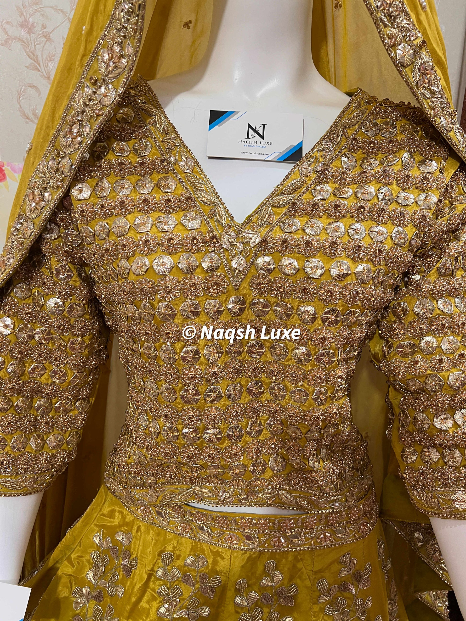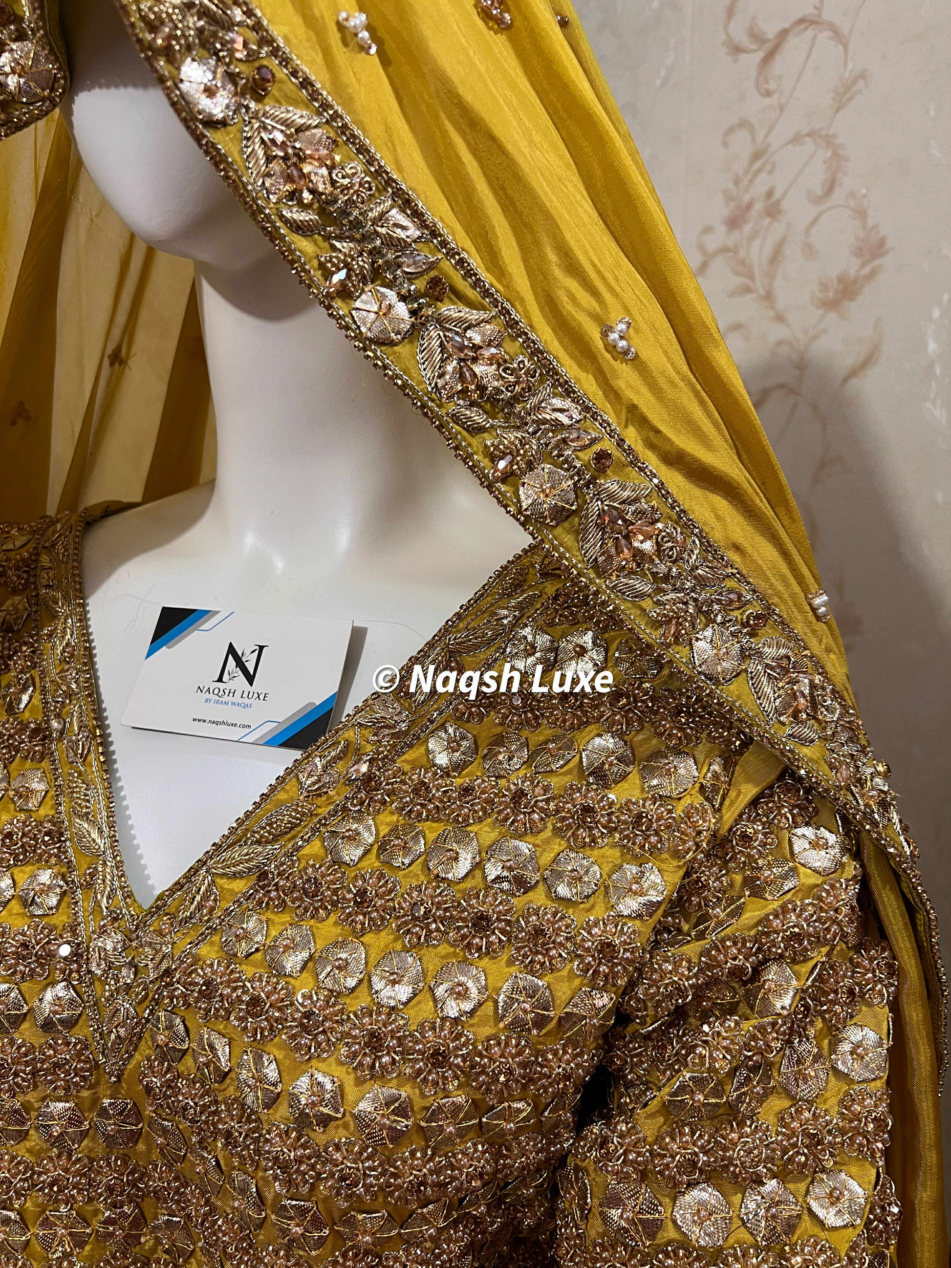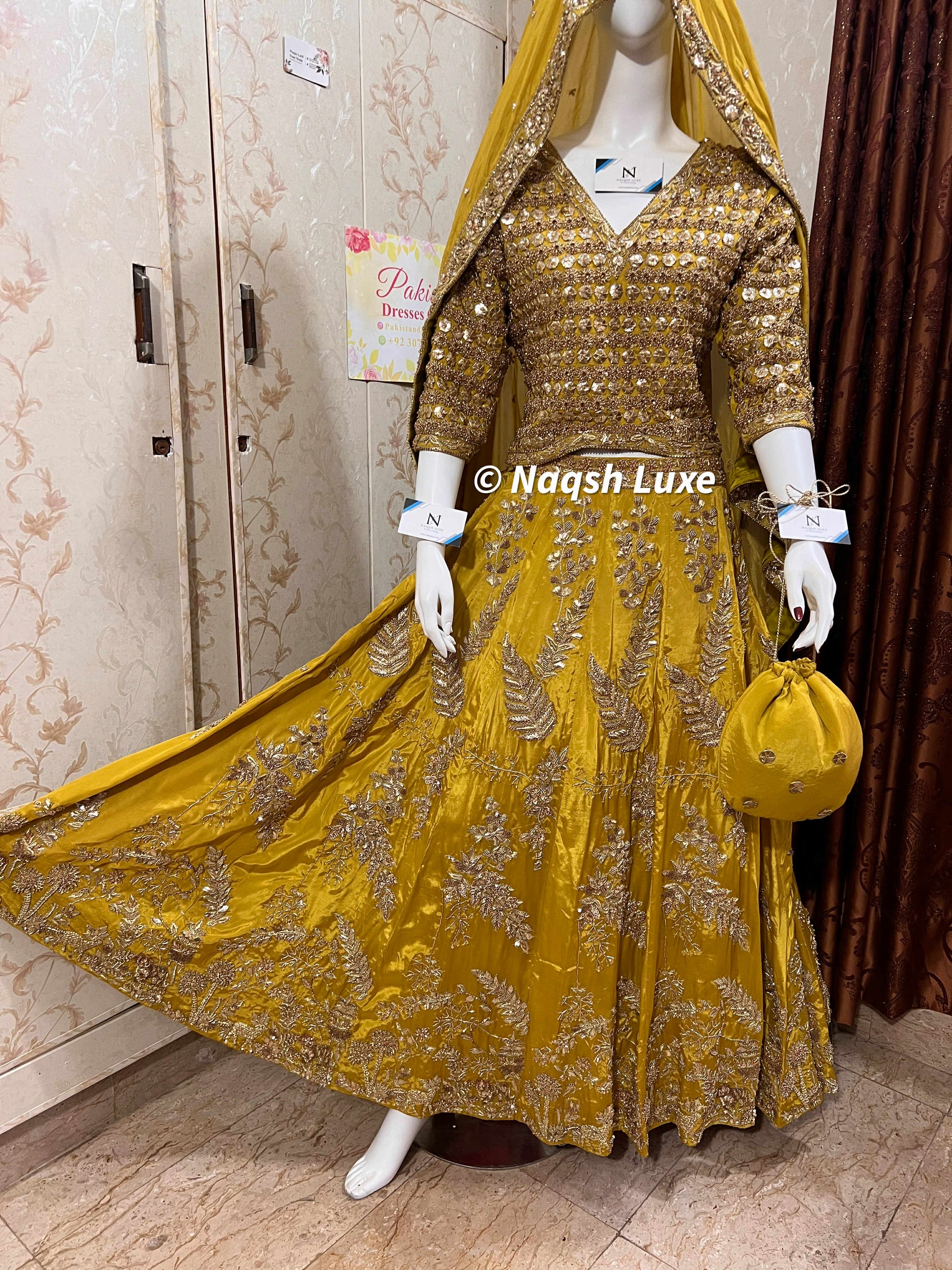 ‘The Pakistani dress is beautifully handcrafted with zari, kora, dabka, stones, pearls and sequins. All the embellishments are handsewn with double thread.